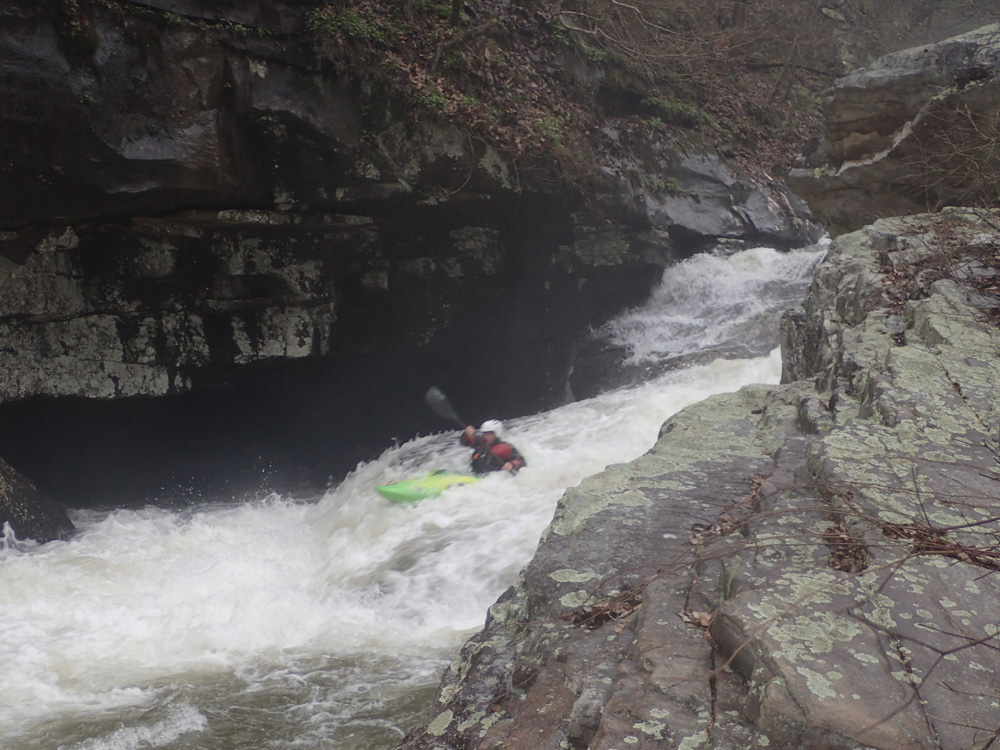- Cave Left (III+ to IV+). At our flow the rapid had a good size hole that could back ender you immediately in front of the cave on the left. There was a clean line though left of center, next to the cave. Trying to stay right actually was worse. Immediately below was another ledge on the left that we ran on the right. We then ferried infront of an undercut on the right and began to work out way down the river.