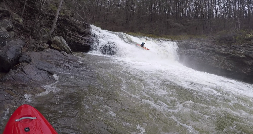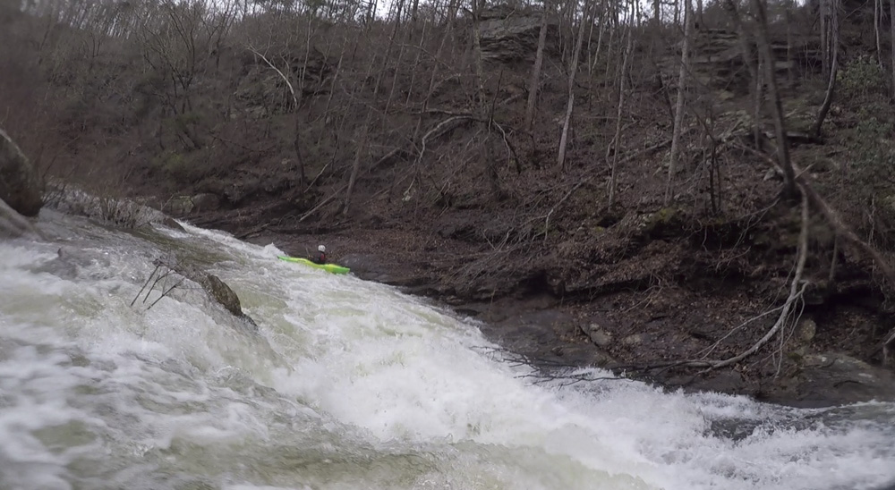 - Entrance Falls (III+ to IV). Immediately below put-in is this falls. Most will run just right of center and ride the slide down. At high flow some boof far left. It is a straight forward drop, but at higher flows it is hard to stay on the surface and the pool moves directly downstream into Two of Three.
