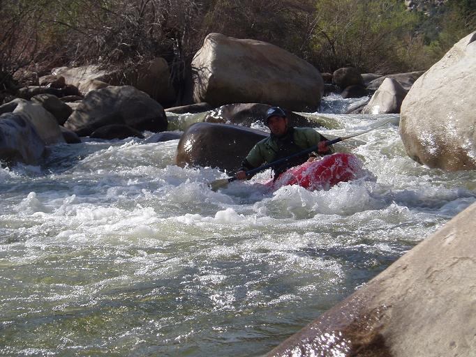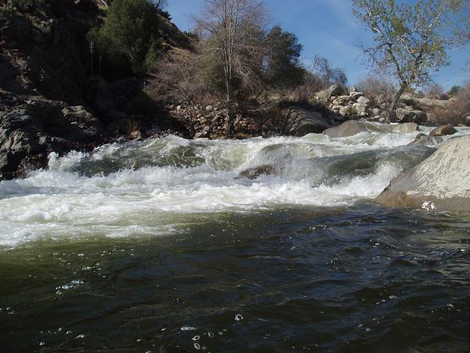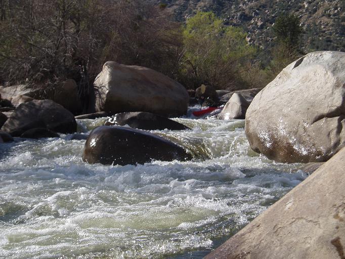 The most fun I had on the Kern on my first trip out there was this run. Normally class V, at the low flow of 540 it was more of a solid class IV run. There were only 4 big rapids, a few medium sized moves to make, and a bunch of busy water on this run, but the rapids sure made it worth while. The first rapid was big, can be seen if driving down 155 towards Kernville. The last big rapid is also visible from the road. I would recommend this run for anyone in the area. Apparently people run the run up to 6,000 and beyond, but at that point most of it is avoided with sneak lines as the house size boulders make house size holes. A great run, the gem of the Lower Upper Kern.