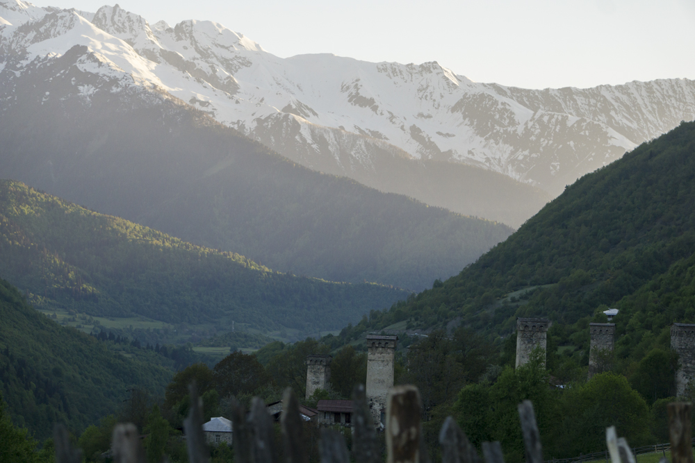 For us though, we left the Khobis and headed North into the Greater Caucasus mountains and got our first views of the tallest mountains in Europe. That's right, the tallest aren't in the Alps, it isn't Mont Blanc... it is Mount Elbrus in the Caucasus Mountains. As we drove, I couldn't stop taking pictures of all the wonderful scenes we passed. Finally, after about 5 hours we arrived in the town of Mestia, deep in the mountains. We got a wonderful dinner, and then set up camp along the Mulkhura with wonderful mountain scenery surrounding us.
