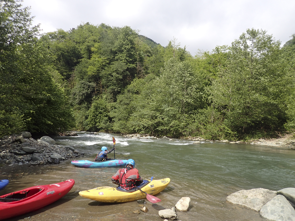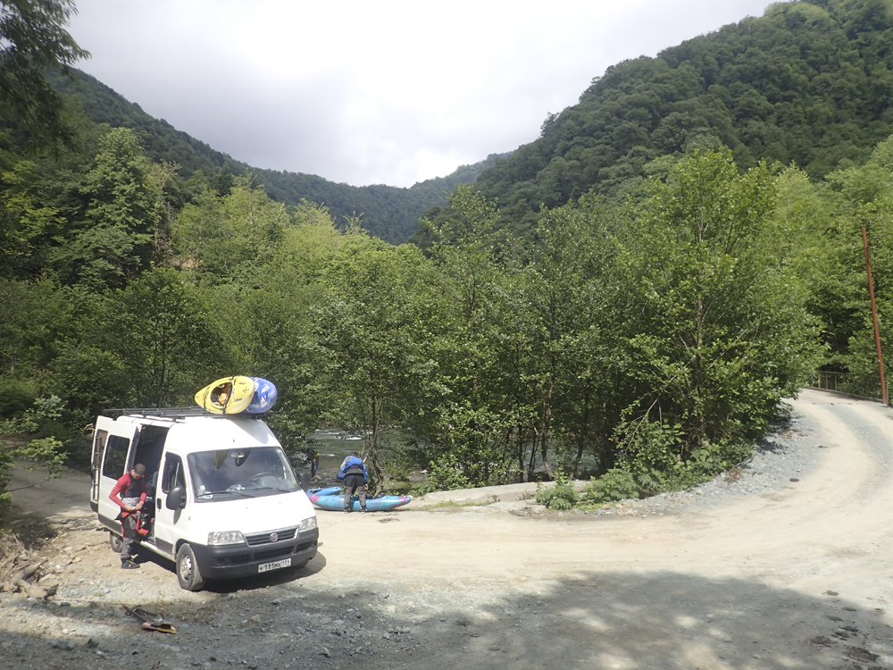 Take-out: 5.5 km above Kobuleti, the road up the river crosses the river. Take-out is here. Though we didn't use this take-out since we did the whole river so I am not sure how you get up from the water.