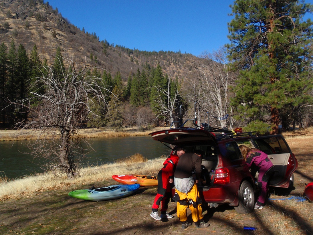 Put-in: Continue up Ager-Beswick which turns into Copco Lake Rd. This is all dirt and there are no signs. From here, the road gets really rough at time. A SUV is a must, during spring and winter, legit 4x4 are needed due to mud. Continue 2 miles and turn left at the fork (Topsy Grade Rd). In 3.6 miles, turn left at the fork which quickly hits a more major rd. Follow this road down to the meadow next to the river. To do the whole run, the shuttle takes a lot longer and involves a lot more to get to the North side of the river and to the powerhouse.