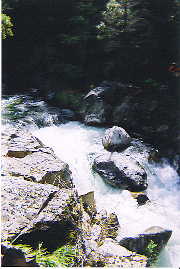 Boulder Bar Boof (IV). About a half mile later the river enters a boulder bar rapid. There is a large eddy on the left just above the steeper part of the rapid, scout from the left bank. The crux of the rapid is just to hit the large pour over hole straight in order to boof over it, a melted boof could cause a difficult swim.