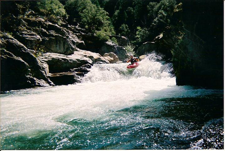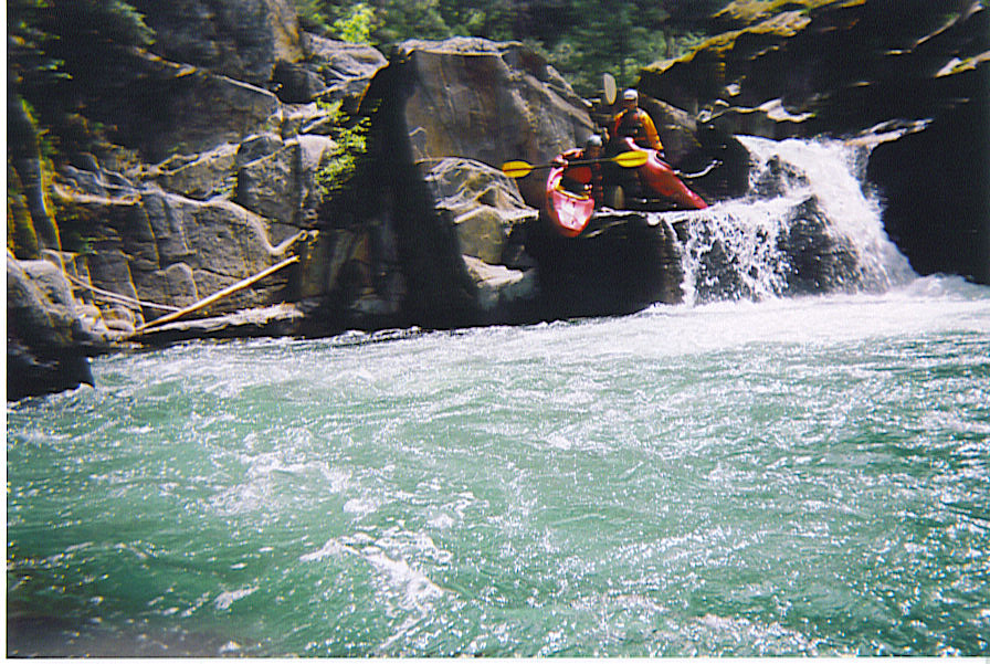 The Crack (V). As our D.A.R.E officers taught us in elementary school, crack is whack. So this is a Portage. The river bends a sharp right turn over a gravel bar, eddy out on the right. There is then a three-foot drop, and twenty foot pool, then "The Crack" itself. If you end up in the pool, at lower water levels there is a small eddy directly above and to the right of the drop, however this is not a recommended target. Portage on the right bank, lining may be needed if you are in doubts of your balance.