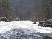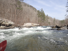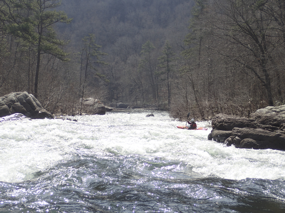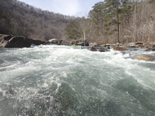 The run starts off with spectacular scenery in the heard of the Little River Canyon. As the river bends left you get the first two class III-ish rapids. And then the river bends south again and you are greeted with the biggest rapid of the run, Bottleneck. We boat scouted it, but I bet the scout is early on the right. Below, the river becomes a mostly flat water paddle with occasional small rapid all the way to take-out. Honestly, for us, after a week of class IV/V, the paddle out dragged on a bit too much for my taste. The scenery also went away as you got closer to the valley exit so we didn't have that to entertain ourselves.