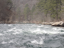- Bottleneck (III to IV). The main rapid of the run is significantly harder than any other on the run. Run the entrance down the right. You can catch a slackwater eddy on the far left just above the crux though you honestly can't see much from there and that puts you directly above the hazards on the left shore just below. The line is to drive through the curler forming on the right shore and stay straight. There is a decent sized hole left of center at the bottom. If you keep it straight you will be all good.