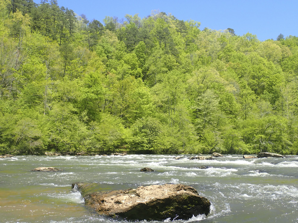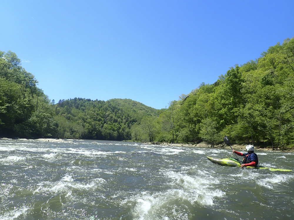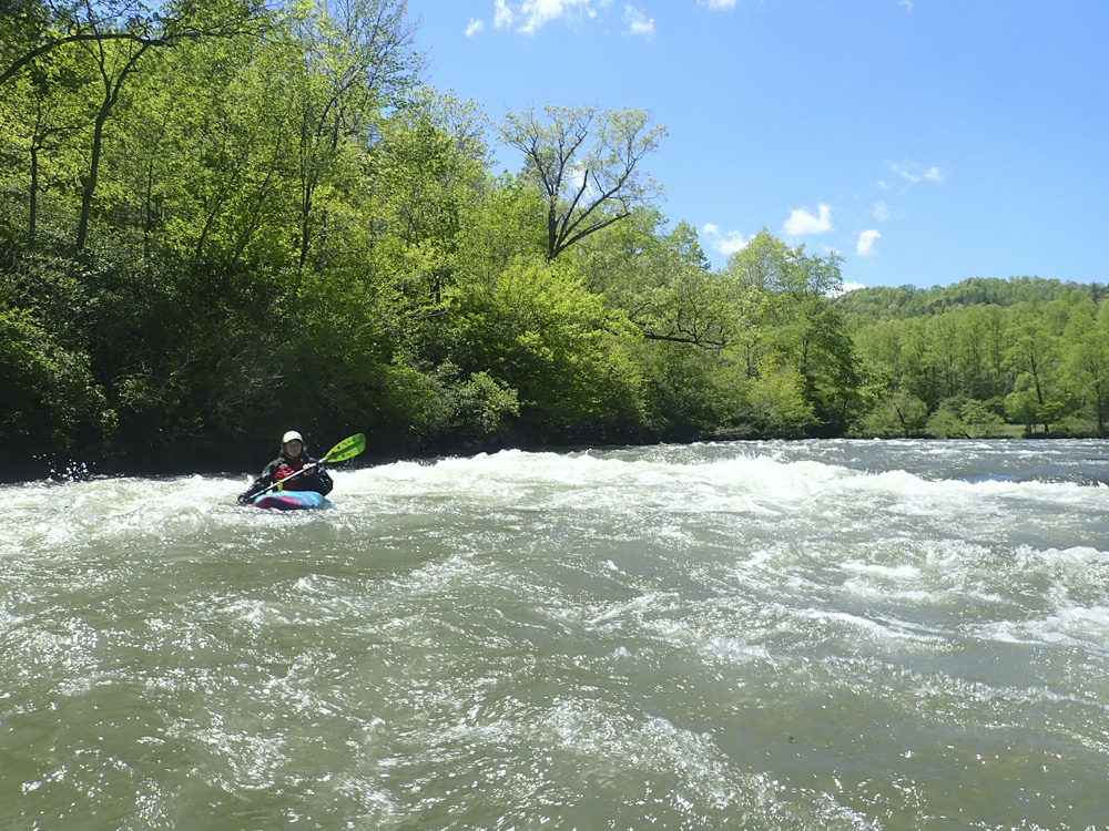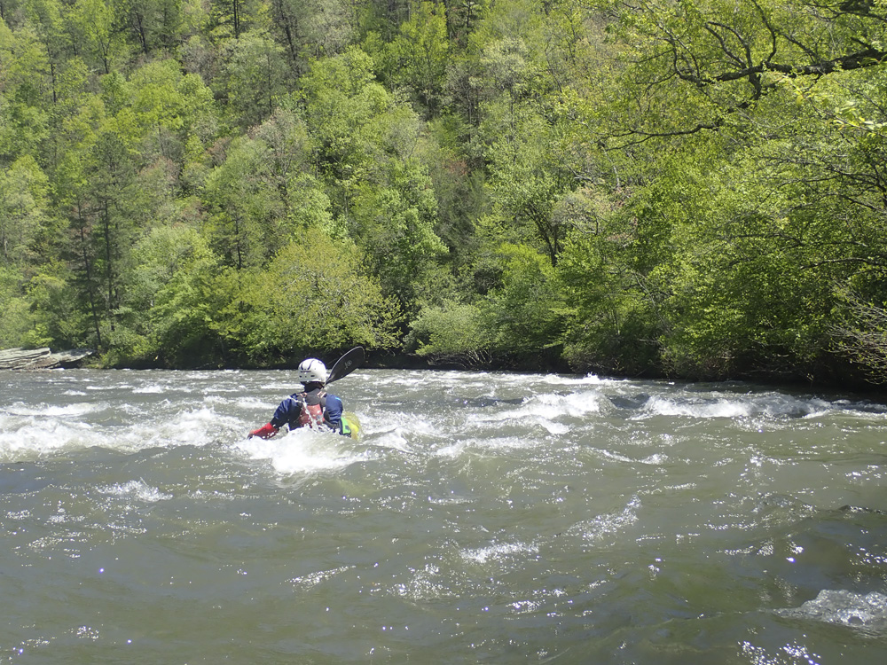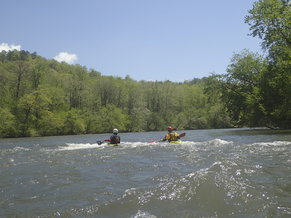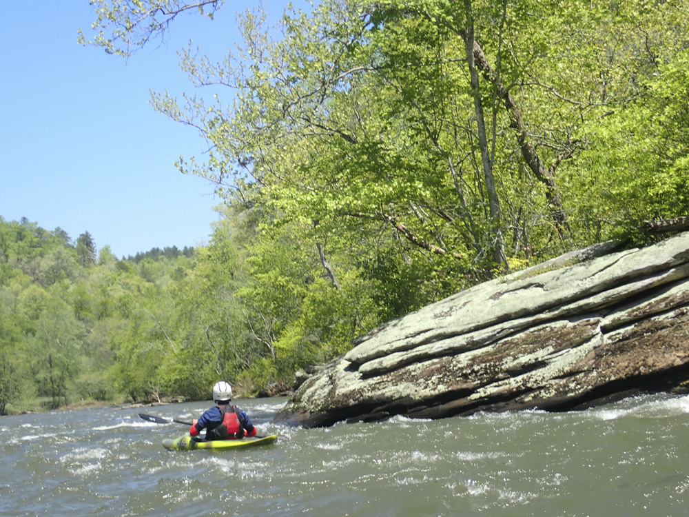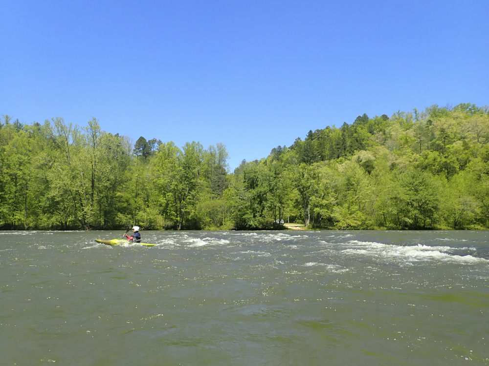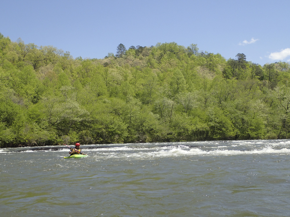 - Long Shoals (II- to II). A long two part rapid. The top part can be run right or left in deeper channels. The river then bends right and there are deep channels right and center. A nice surf wave appears in the center at the bottom, with eddy access, at some flows.