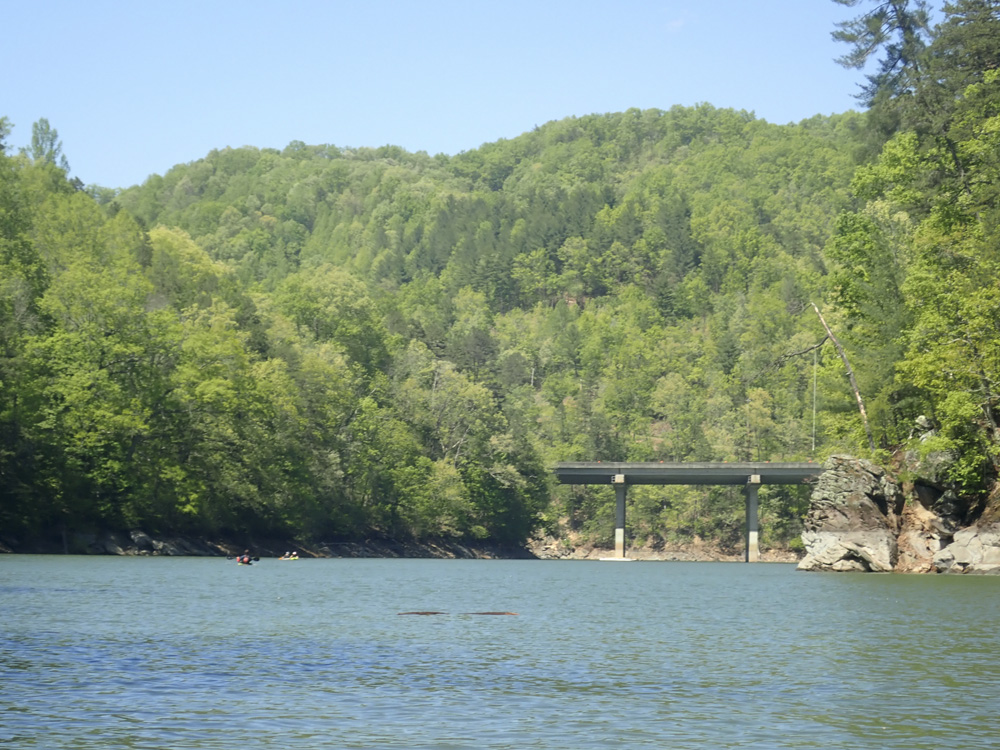 Lake Take-out: From the main Bryson City exit, take US-74 west for 6.1 miles. Just after you cross the lake, park on the left. There is a "path" up the upstream, river left, side of the lake.