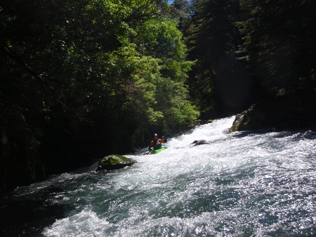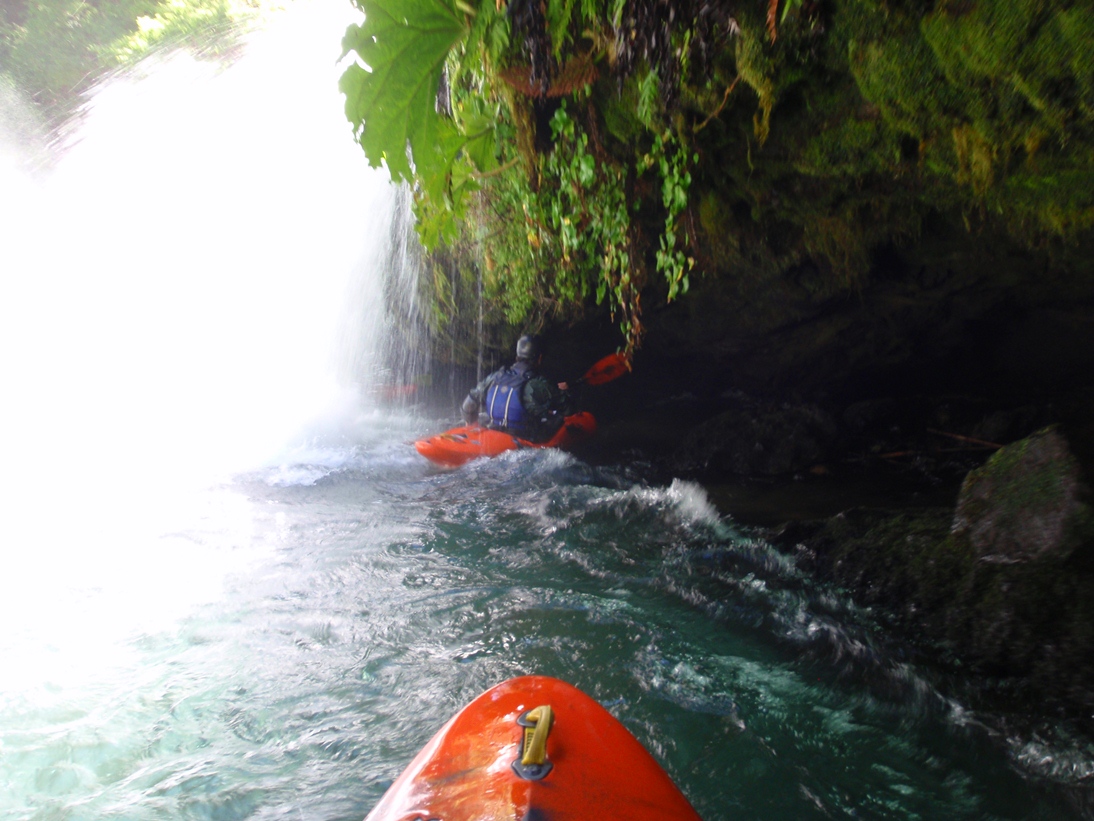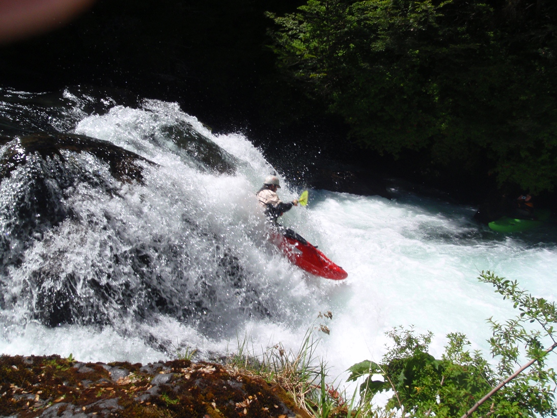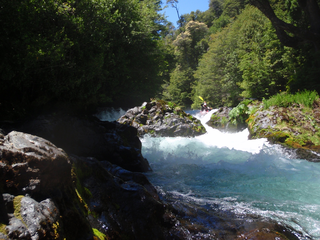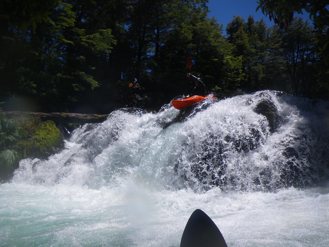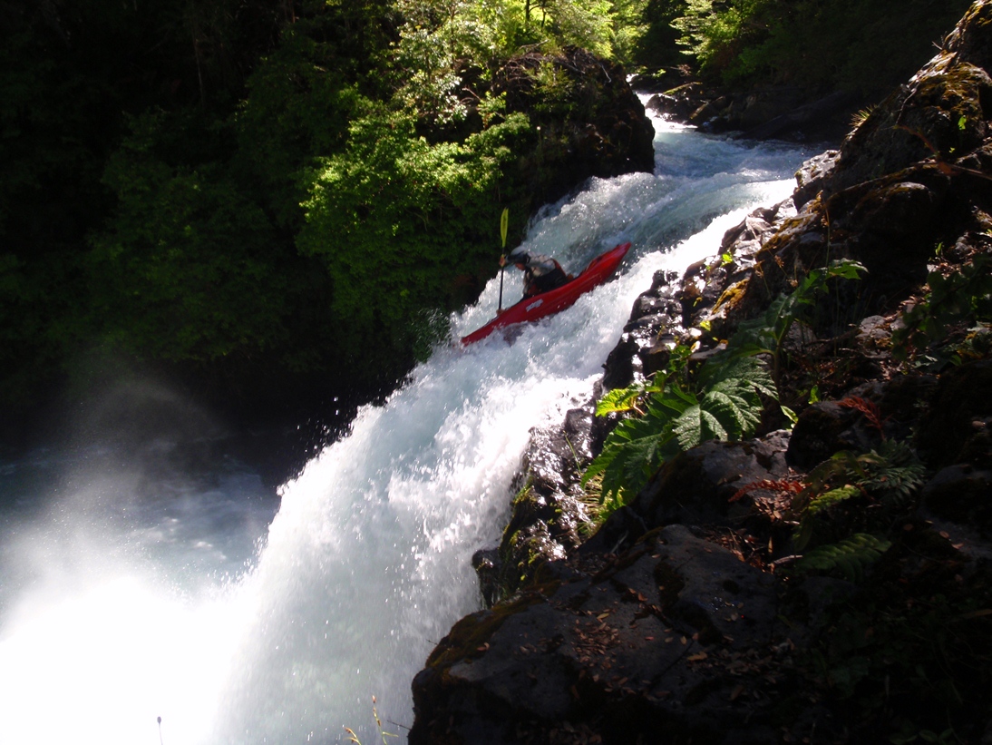 - Llancahue Falls (IV- to IV+). As far as waterfalls go, this one is really easy for its size. There is a autoboof left of center, and there is a pool downstream. There is also good locations to set safety from both above and below for those are who are nervous. Scout from the left eddy just at the top. Also, once down below, take the time to paddle behind the falls. It's pretty cool back there.