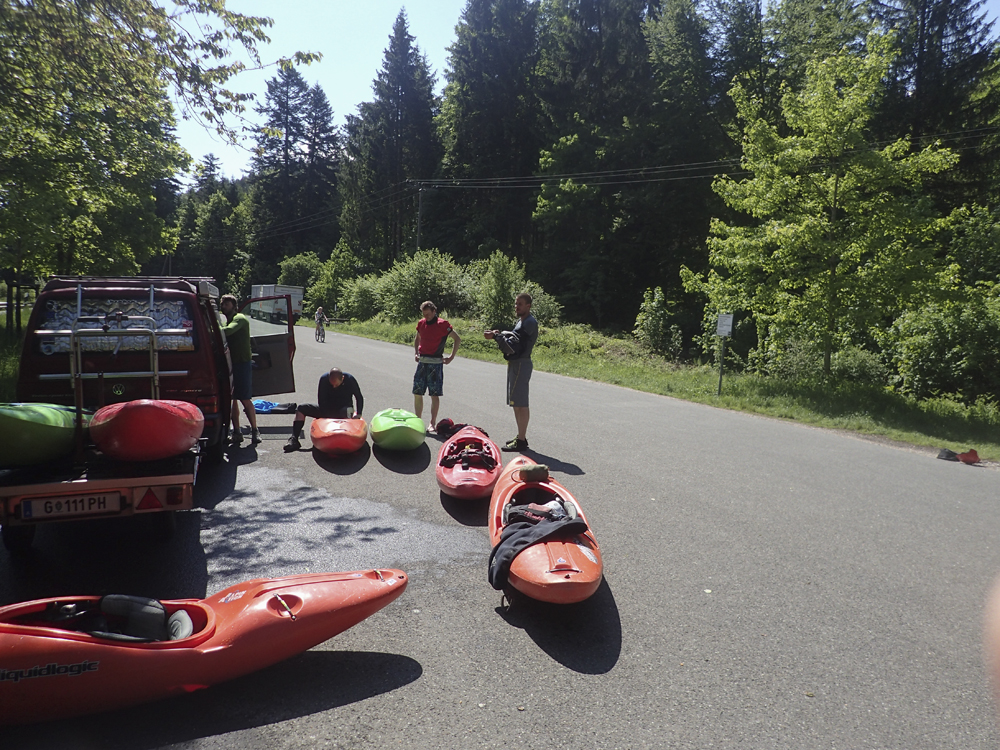 Instead of doing laps, we headed over to the Walchen which we had heard was in but very low the day before. We said goodbye to Thomas first, as he was going to stay with his friends. And with hopes that the rain had affected the Walchen we drove into the National Park (cost 3 Euro). First before arriving at the Walchen, we stopped to look at the Rißbach which has a set of drops that is the site of a huckfest each fall. Not surprisingly, it was Richter high while we were there. There was no question, on the Walchen. Arriving at the take-out for the Walchen a huge rain storm dropped on us. Reiner ran down to check flows while the rest of us stay in our cars... thanks for taking one of the team Reiner! Returning with the bad news, he told us that the flow was really high, similar to the Rißbach. But, on the bright side, the Upper would likely have water, which it never does. So we drove further up but as the river disappeared for a curve, at next sight the river was bone dry. It turns out that curve has a tributary, and apparently that trib was providing all of the water. So... in a very anti-climactic way, our trip ended. We all ended up getting coffee nearby to hang out for another hour before parting ways with Harry and his family. It is always sad when you say goodbye to your international friends. This was my 5th trip paddling with Harry (Corscia, California, Italy/Switzerland, Norway and now Austria), and as families grow and priorities change, you just never know for certain when the next time you will all see each is. I hope I get to hang out with Harry, Hannah and their boys Moritz and Paul again soon!
