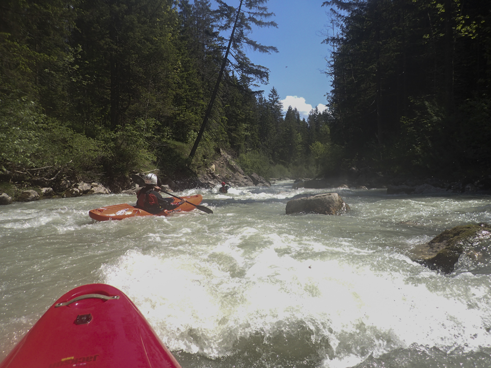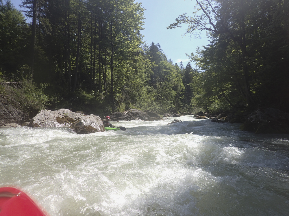 The next morning, flows were still low, but runnable. The overnight rain had not budged the flow for us. But, driving up to put in we found that there was still enough water for it to be fun. It was probably an ideal flow for the class III to IV boater who most frequent this run (110 cms). It is none as the go-to run for Germans, much like the South Fork American's Chili Bar section for the West Coast or the Ocoee here in the East. The run provided to be full of fun class III creeking in a river setting. If that makes sense. Overall, it did not take long, apparently locals will do three or four laps in a day normally.