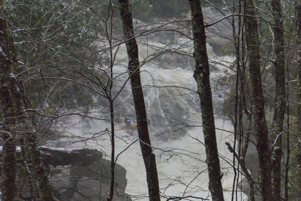What we found was a healthy, but still runnable, flow on the falls. I decided it wasn't for me at that flow. I haven't been feeling super strong lately, so instead, after taking some photos of Jim, Caleb, and Trembly running it, I put on below the falls for the worthwhile in their own right rapids between the falls and the confluence. A few hazardous spots exist, but those rapids are much less serious than the falls, but still IV to IV+ in their own right. I thought that this is an interesting alternative for the days when Tremont is just medium or medium low, to add some rapids. I am not sure when I will go back up there, but it is worth doing, even if you don't run the falls.