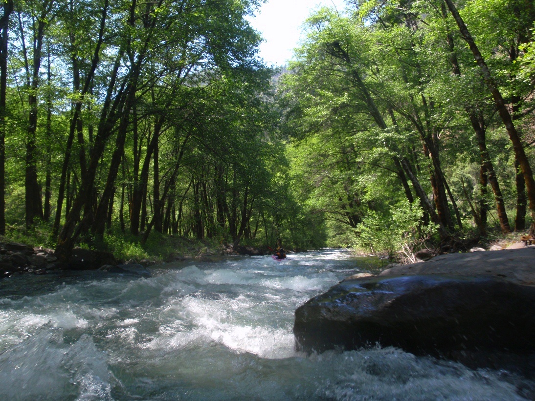 Boogie (III to IV+). Just downsteam the river enters a long fun section of boogie. From there, the boggie gets a little easier leading up to the next sizable drop.