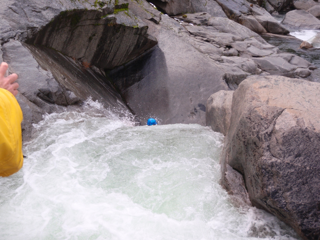 - Blue Angle Slide (V- to V). Two distinct slides separated by a short corridor of moving water. The first is easier but still flipped me, the second starts with a very large hole before sliding down another 10-15 feet. At high water this links directly to the next slide. At low flows there was a nice large pool here.