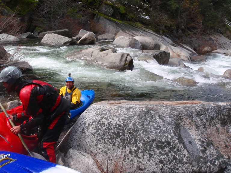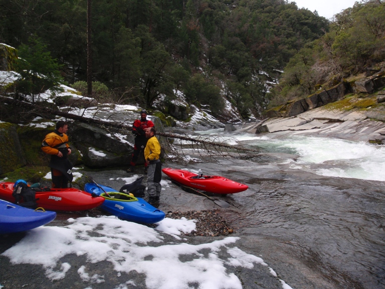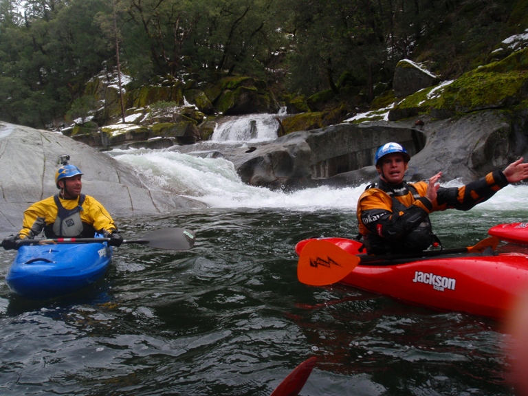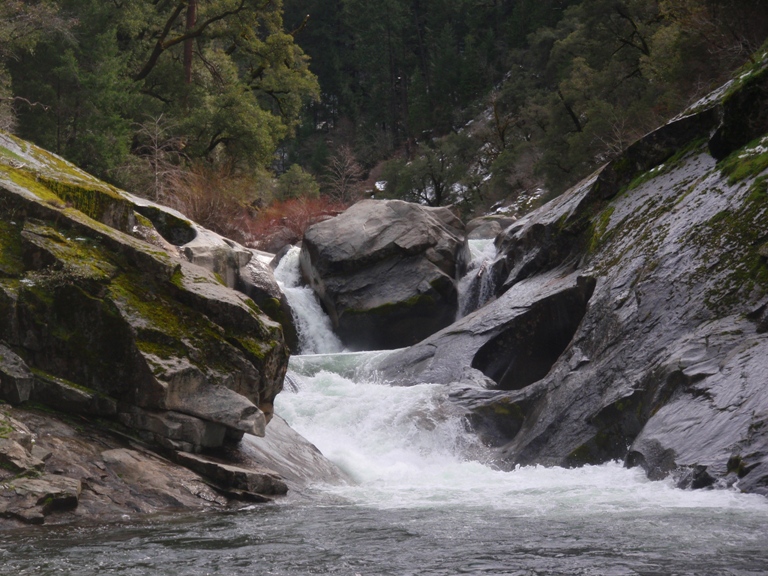Put-in: No Longer Kosher Get back to and continue driving up on slug Gulch Rd. After 2.3 miles turn left on Omo Ranch Rd. Continue on Omo for 1.1 miles until you reach Mill Rd. Darin actually says it is Indian Diggins Rd but I think that road is actually only on the right, on the left I think it is Mill Rd. Either way, I wasn't driving so look for either sign. Continue it down what is residential so please go slow. At the Y go left and park at the gate. This is private property but the owners have been very welcome though also very nervous about the growing popularity especially during fire season. Though we of course wouldn't be there during fire season but that is besides the point, please respect the folks by keeping your music quite and your speed slow. Thanks. From the gate, walk down the trail about ¼ to ½ a mile. Once the creek is next to the trail, hop into the creek and float ¼ of a mile on the water until there is a drastic change in gradient. Get out on the right and follow the trail down the cascading creek to the Middle Cosumnes, Plan on the hike taking 20-30 minutes and also plan on getting poison oak. In 2010 the locals at put-in decided they didn't want us on the put-in road. I have yet to go in the river right side but am told the directions are easy to figure out on google map. Or check out Darin's directions.