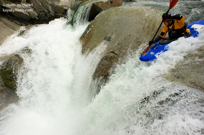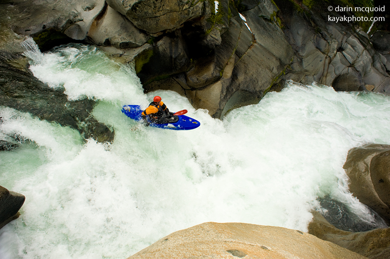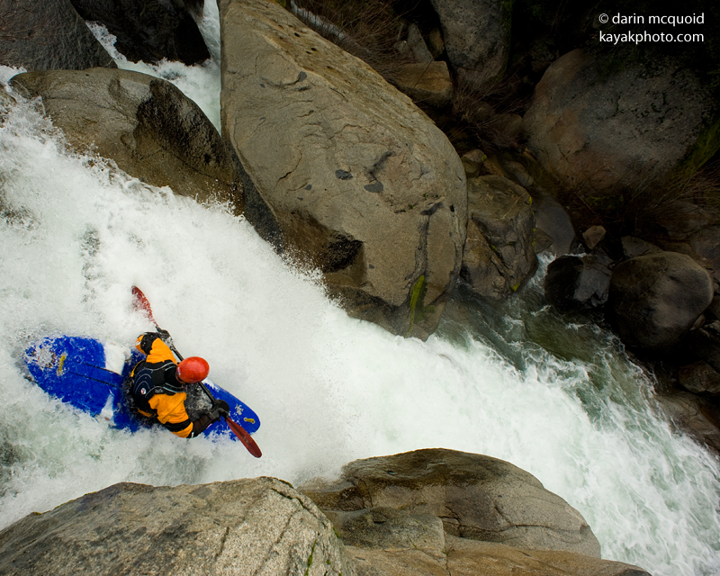 Until last year this run was never on my mind as something I may want to do. I had known about the run ever since I first saw it in a Cali Product video, and always thought that it looked ridiculous. Perhaps that is due to the water levels that they use to run it at, I have heard it was upwards of 800 cfs (compared to the normal 200-350 cfs that folks run it at these days). Things changed last year when Darin invited me on the run and I psyched myself into it and made myself believe that if I were in the right mood and fired up, I could go big and portage everything. Well, that day we ended up running Golden Gate and I waited for another day that I might feel the desire to go big.