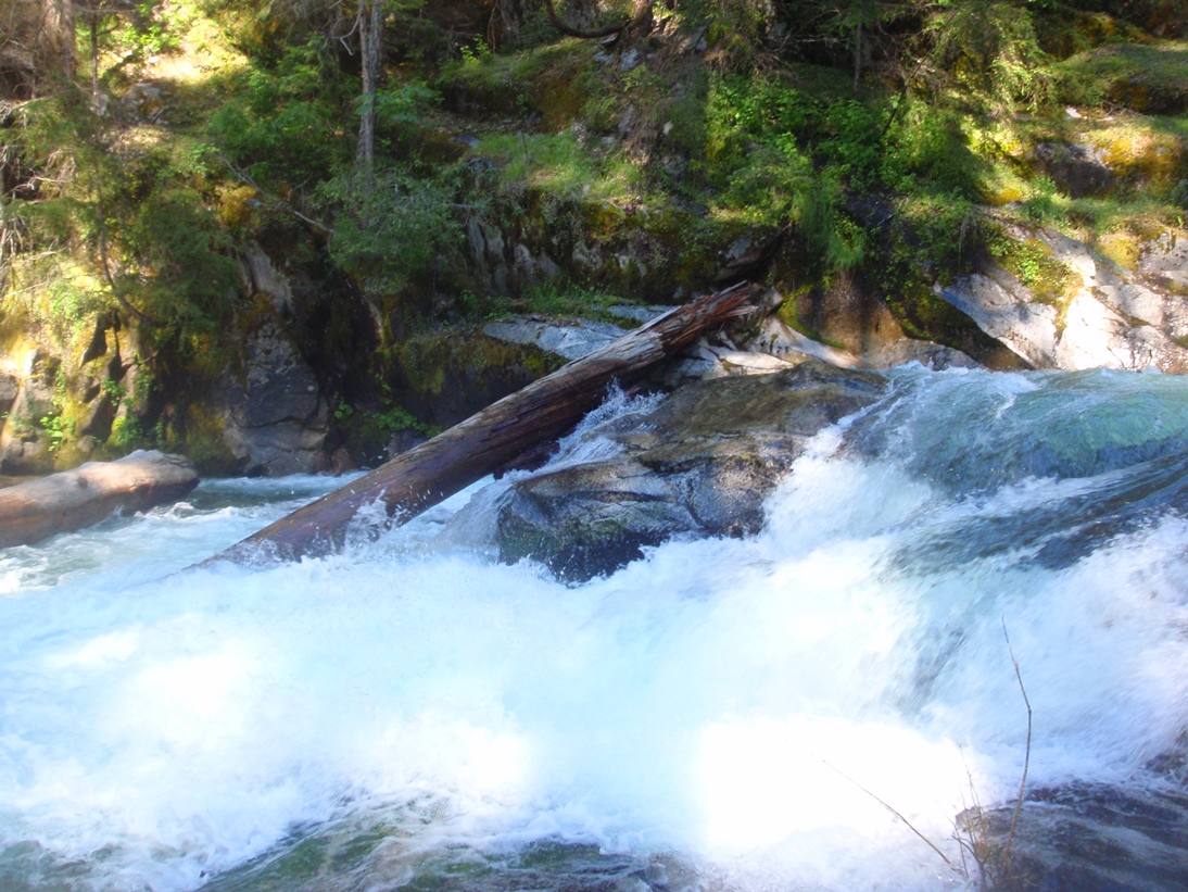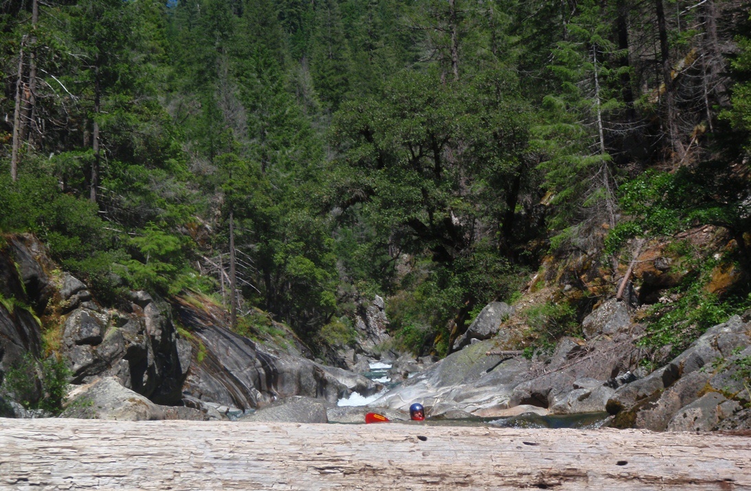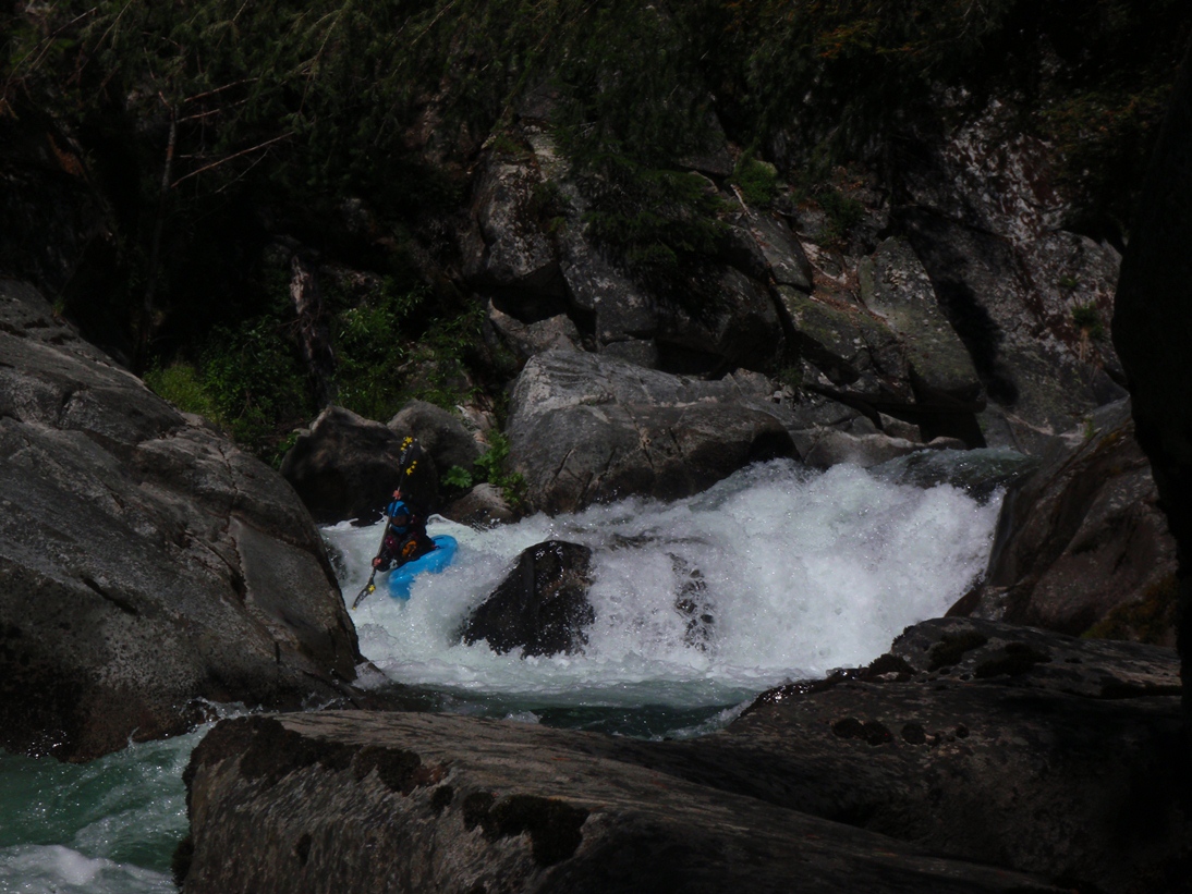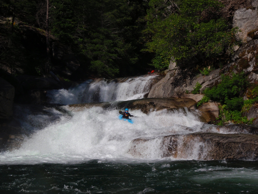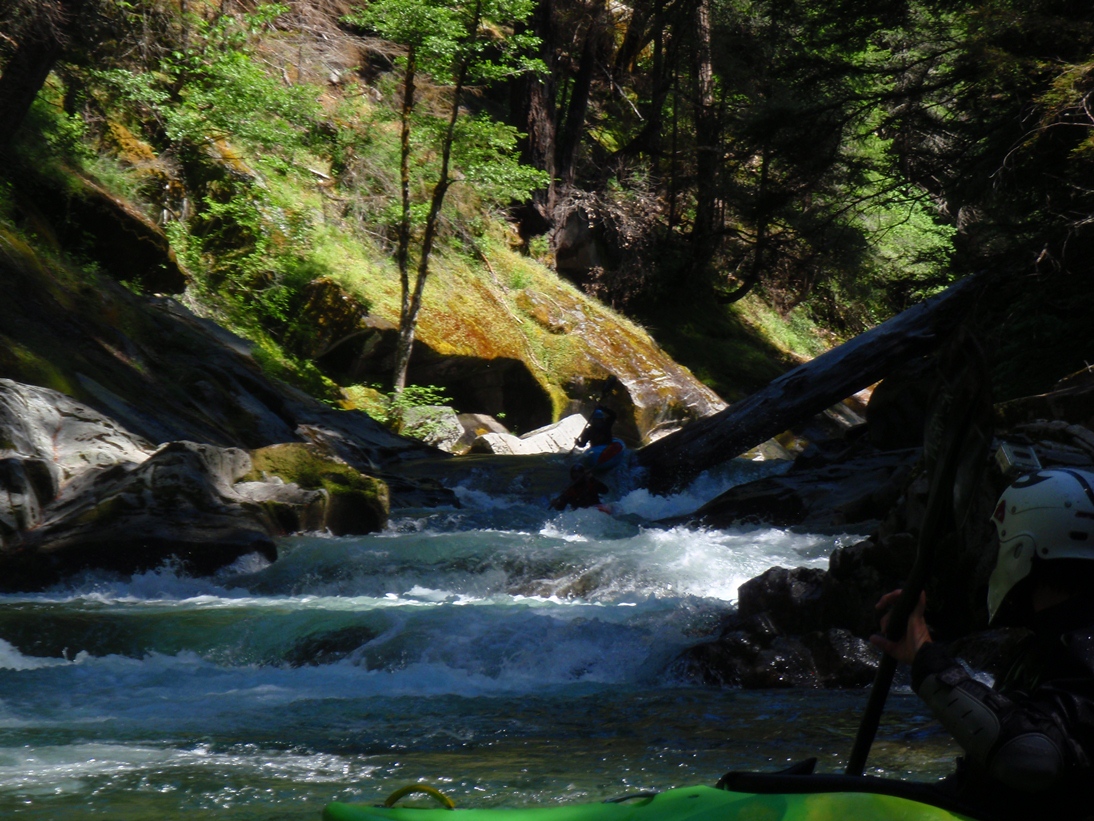 Must Run (V). A large rapid that I believe is a must run. At lower and medium flows you enter right, boof the first hole. Then drive right to boof the middle hole. Then drive center to right and boof the ledge below. Be aware there is a wall on the right that causes problems and a shelf on the left to piton. Oh and there is a log across the river just below causing danger to any swimmer. There is a long scout on the left for those wanting to look.