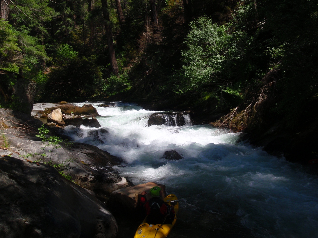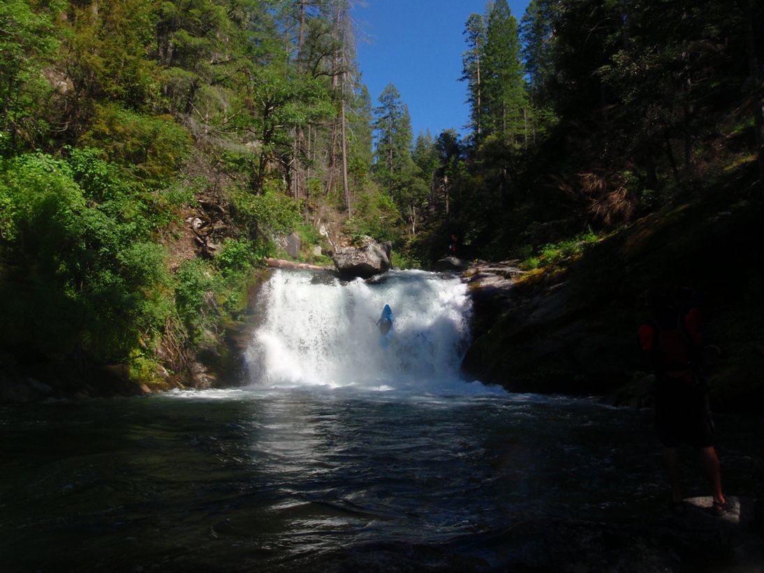 South Branch of the Middle Fork of the Feather River, most commonly referred to just as "The South Branch." This river is in the classic echelon of rivers in California, along with South Silver and Big Kimshew, these rivers are known for their steep gradient, clean drops, and unique stature as one-day runs. This run used to be considered a two day run back when people would regularly paddle the Lower run in conjunction with the Upper which would necessitate a 1 hour portage through poison oak infested mountain sides to avoid the bottom several drops of the Seven Falls. A few years ago, word got out that the hike out below the "50" footer was actually not that bad and the popularity grew exponentially. This was also the time that blogs were extremely popular which probably contributed as well.