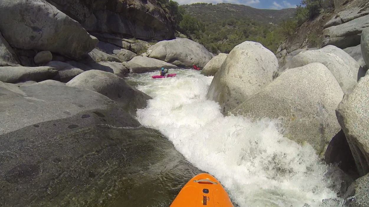 As for the run, we had lowerish water, about 775 at Three Rivers when we took off. I thought this was a pretty good flow for a first time down with my skill level. It was no pushy, it could have been more padded out, but overall it was slower than it would be with more water which is nice when the drops seem to just keep coming. For reference, I thought this run was a little harder than Golden Gate, though I also didn't run several of the big rapids on Golden Gate. It was also however a completely different style, it felt more like a big creek than a river. The rapids were steep and boulder filled affairs or perfect bedrock drops. Both of which brought the consequences straight to your face, whether it was the plethora of sieves to avoid (see the entry of 420 gorge) or the holes leaving you completely alone just out of reach of help (see middle of 420 gorge), the hazards were more apparent than Golden Gate though in total perhaps the rapids were milder. Whichever is harder, Hospital Rock was a stressful run for someone like me.