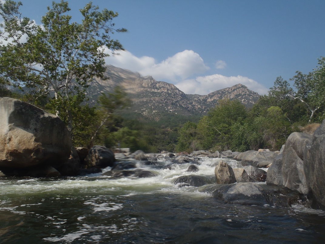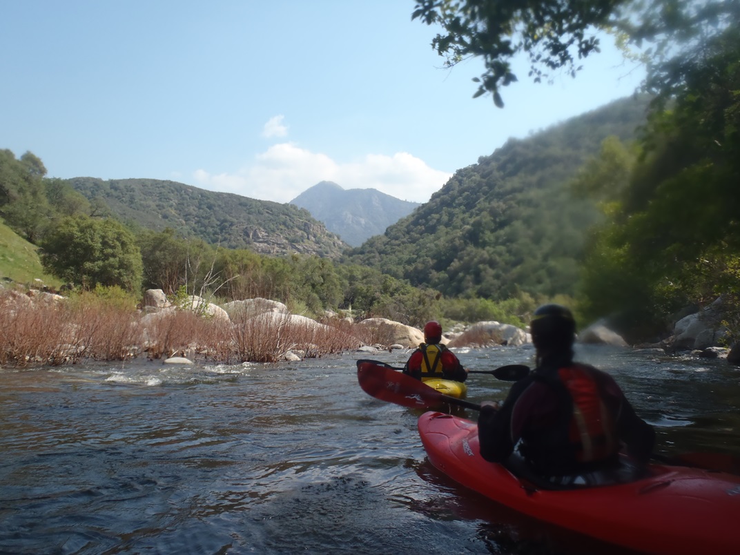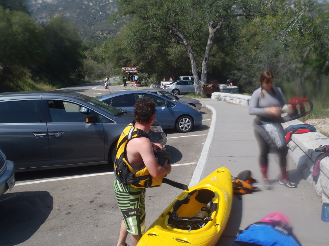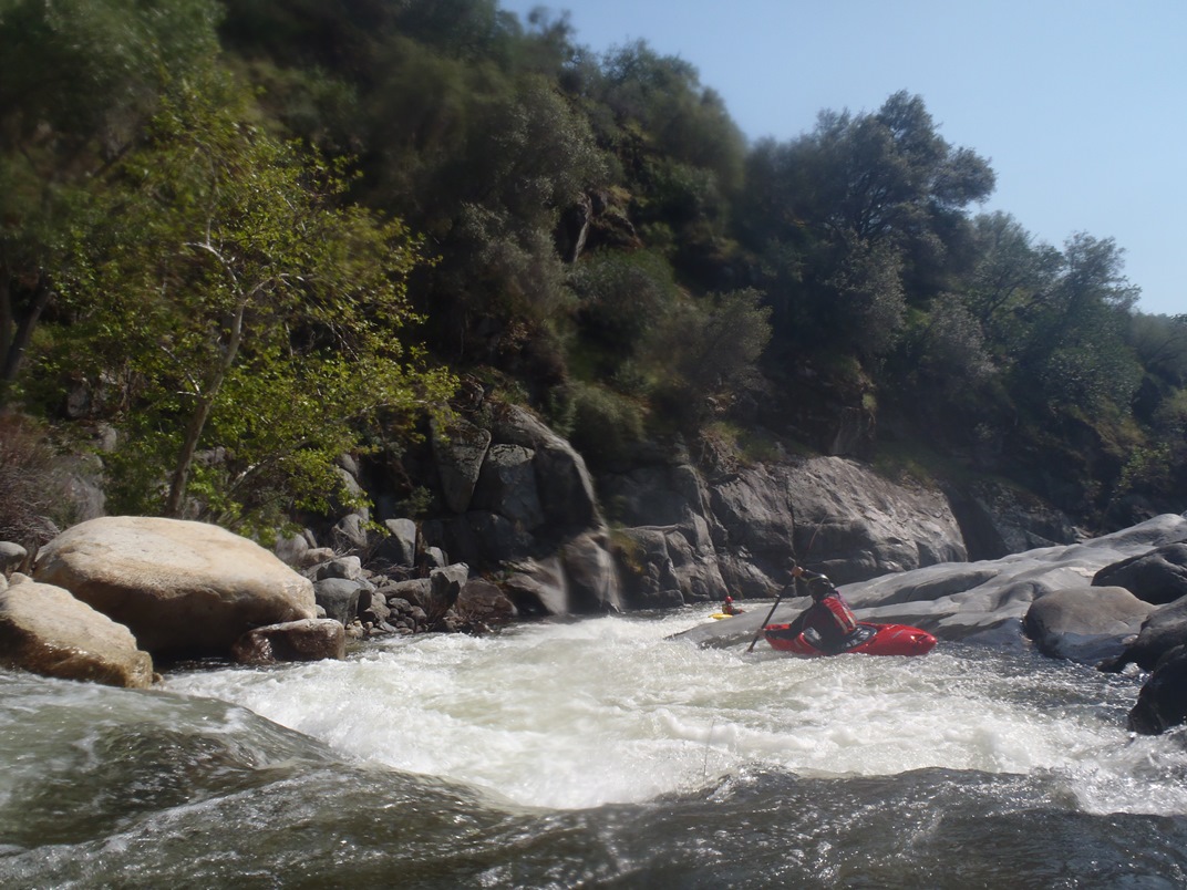 Put-in: Enter the park on Highway 198 and go less than a mile to the turnout on the right at the "Sequoia National Park" sign. There is a trial down to the water here.