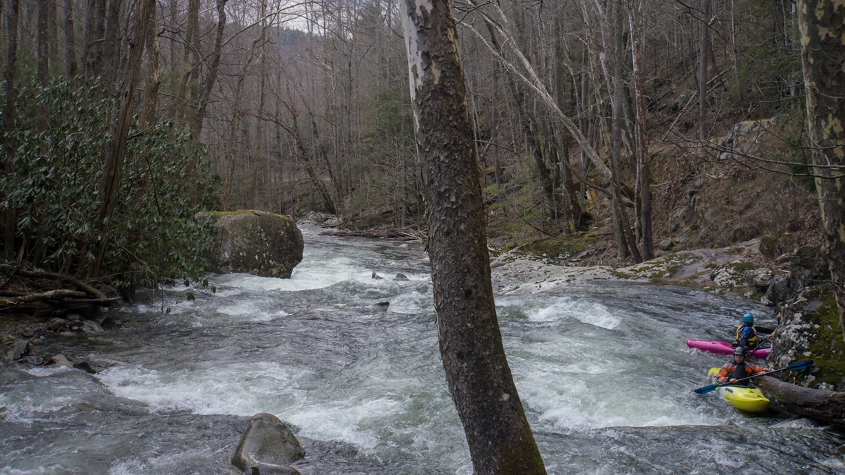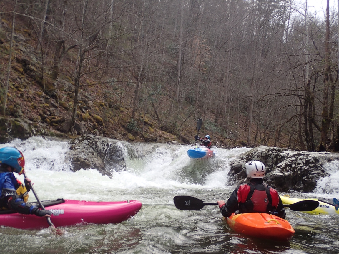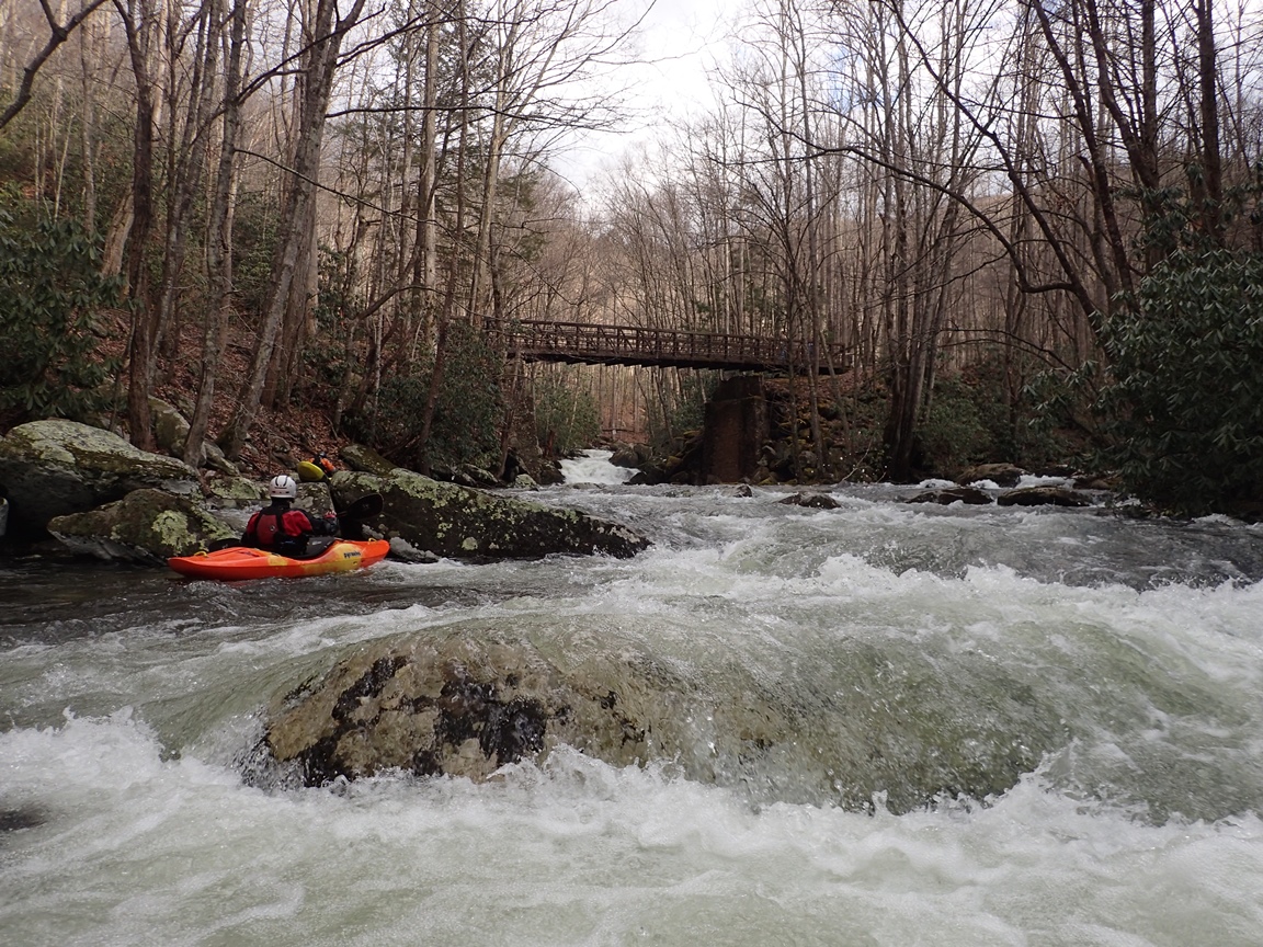 Putting in at the confluence of Lynn Camp and Thunderhead Prongs the river quickly picks up speed to the first rapid at Staircase. Below, is one boof or slot after another for a non stop 3/4s of a mile down to the bridge which offers lap potential or an alternate put in for those who might not want to bite off the whole meat of it. Below, the river turns into non stop class III with an occasional class IV set... with the crux being "Stop Sign" which is a great long rapid starting with some nice slides and feeding into a macking hole. This is one I am glad to have a boof for as the hole is mean, it will backender you and then beat the snot out of you. Set safety / scout from the road on the left. Downstream a few more nice slidey sections and a few fun rapid sets keep you busy all the way down to the Tremont Institute.