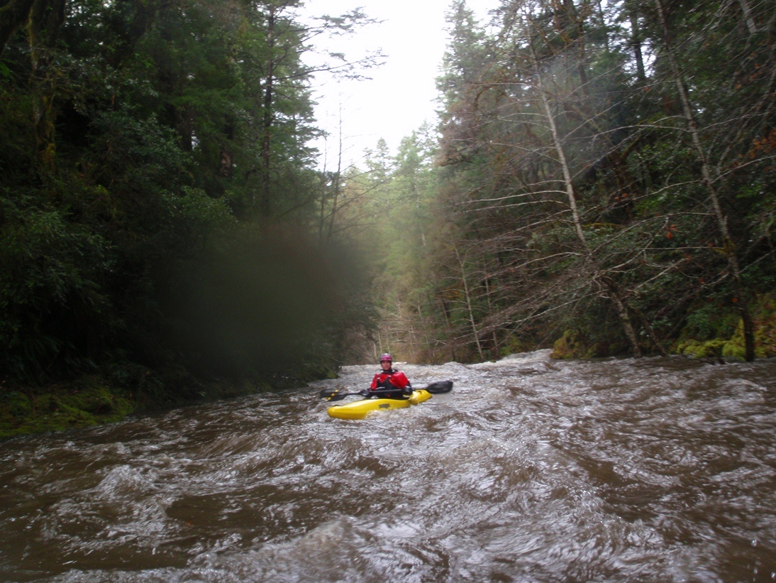 I have heard at lower flows the river is class III-IV. At the high flows, the river starts off fast down a mile to the confluence with Griffin Creek. After that, the river has more distinct crescendos and more eddies. We did just barely clear over one log not far below that with less water would have been very bad, as it was we all type-writered while sliding on top of the log. Luckily we all cleared. A short way downriver we also had a portage around a log jam, though this one had easy eddy access on the left top portage from. A short ways below Idlewyld was one last big rapid where a good sized feature type-writered me into the shore and into a tree, luckily the tree was not lodged in place firmly and moved, letting me by without a flip, pin, or even a brace. I was very thankful. A few granite bedrock rapids were fun, and gave us one scare as David dropped over a ledge after being spun around backwards. Luckily the hole was flushy as a swim anywhere on this river would be less than ideal at this flow. Once the Siskiyou Fork comes in the on the left, the action is over. A mellow float is all that waits downstream to take-out.
