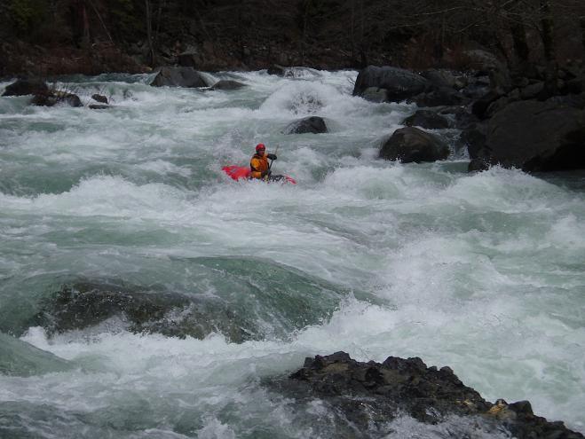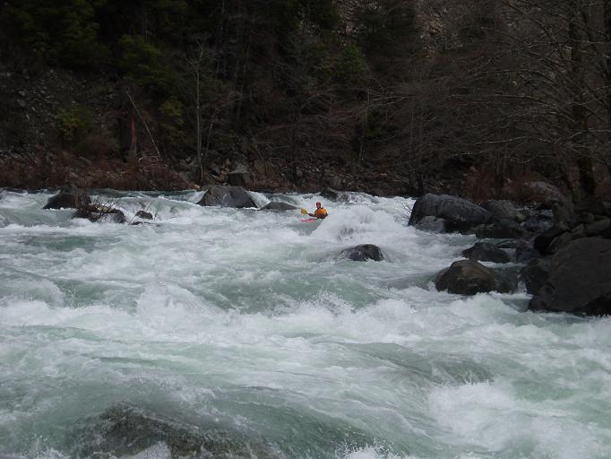 There are many long class III- or class III wave trains that have a large hole here or there. Just keep your eyes open and read them from the river, none will sneak up on you as I remember it.
