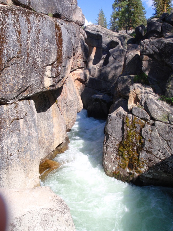 - Portage (U). Unrunnable, scout this out prior to running the river. There are turnouts along the river right at the gorge, between Pigeon Flat (downstream) and Eureka Valley (Upstream) Campgrounds. Scout the eddy for this one, it is a big eddy, but you don't want to drift past it cause there are no more after it. Portage on the right. Update 2015 Apparently this section is now clear of wood... stout, but clear of wood.