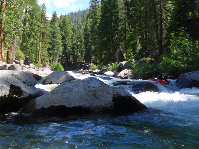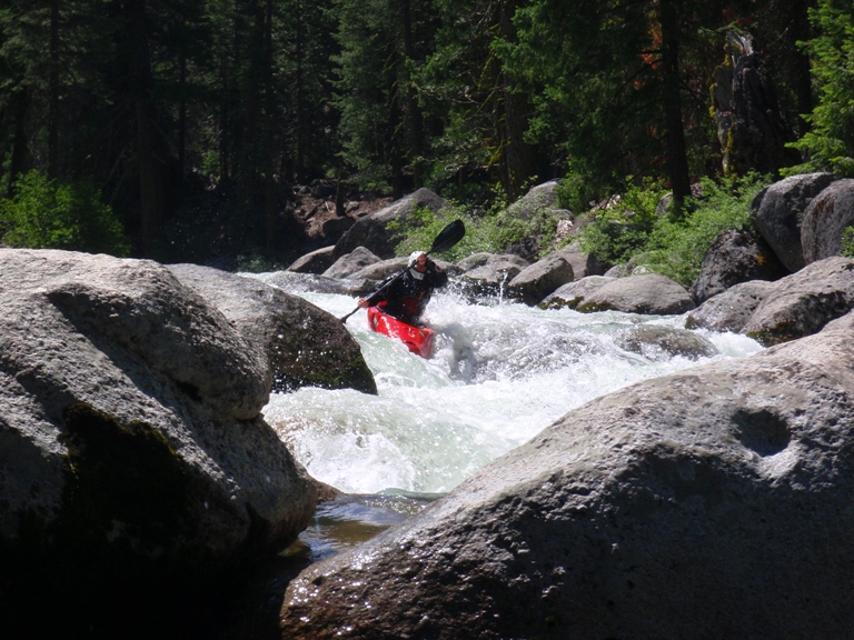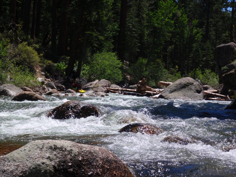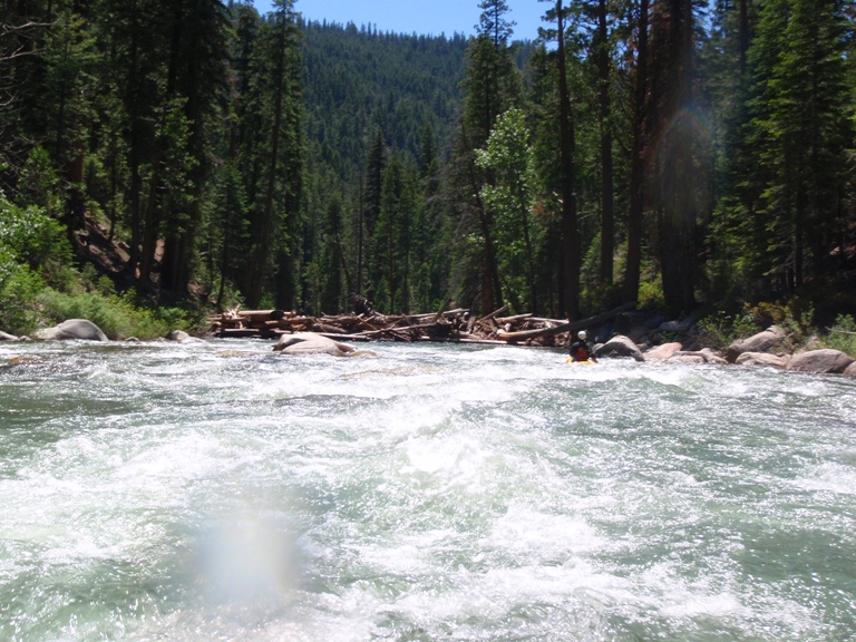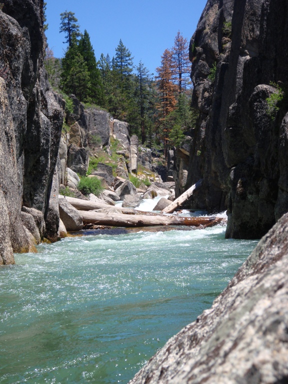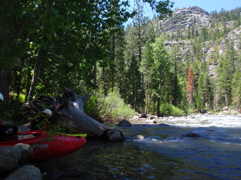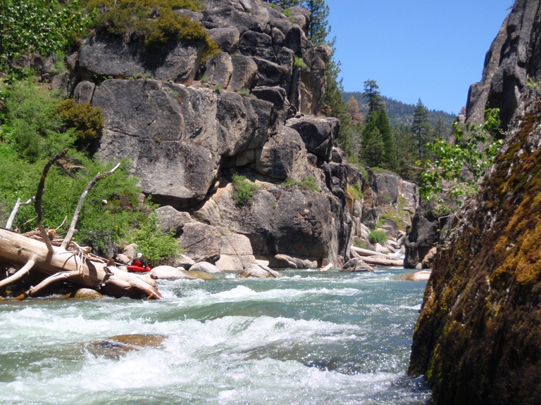 So, this run is advertised as class IV-V. Interesting. There were some wood portages, there were two gorges that would certainly kill you, there was another gorge that would be class IV-V if it weren't chalked full of log jams requiring a portage, there was 7 miles of high stress, tree around every corner class II to III-... oh, and there was the final 0.6 miles of class IV-V runnable whitewater. Take what you want from that. The portage gorges were very cool to see, however both are also mere feet from Highway 108 so you could drive, park, and walk to see them. The first gorge portage was long, probably close to a half mile due to the logs filling the mini-gorge below it. In all, I would say this run was a lot of work, with minimal payoff. It could be a fun class III day to boat to the highway 108 bridge, but a class IV-V boater will most certainly be bored doing the whole run. If you are a class IV-V boater, put in just above the good section and run it in conjunction with the Donnells run downstream. Although Dardanelles is roadside at all times (other than in the last mile where the goods are) with fisherman and their hooks being the greatest concern (with the log jams close behind), downstream awaits clean rapids, complete solitude, no roads, and fantastic views. Not that the views in Dardanelles are bad, they are good, better than the average kayak run, just not epic.