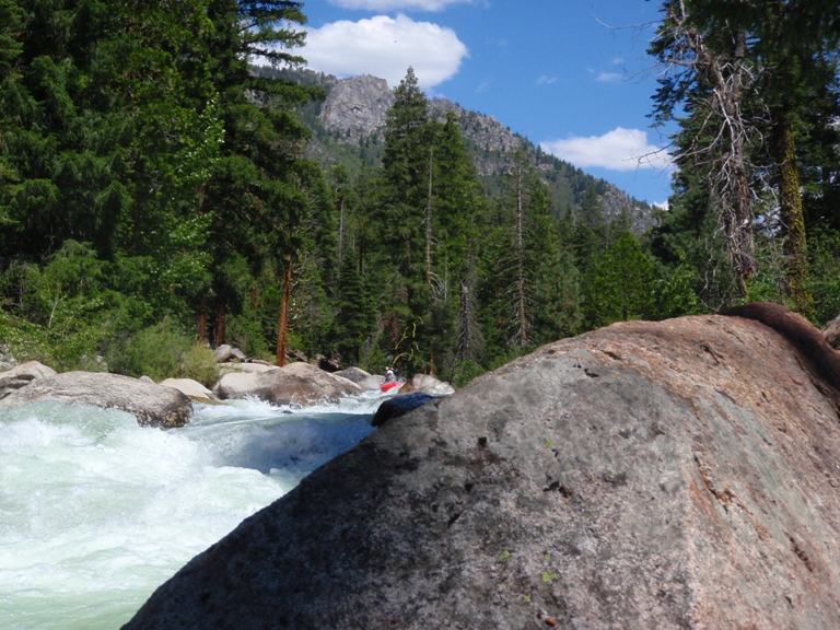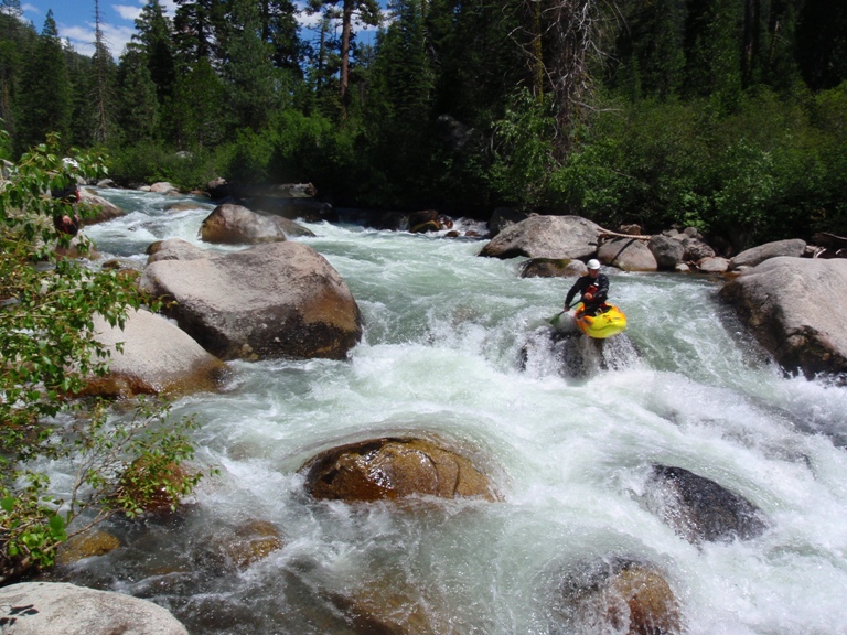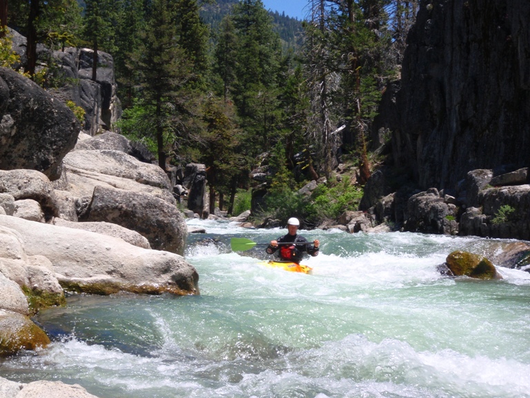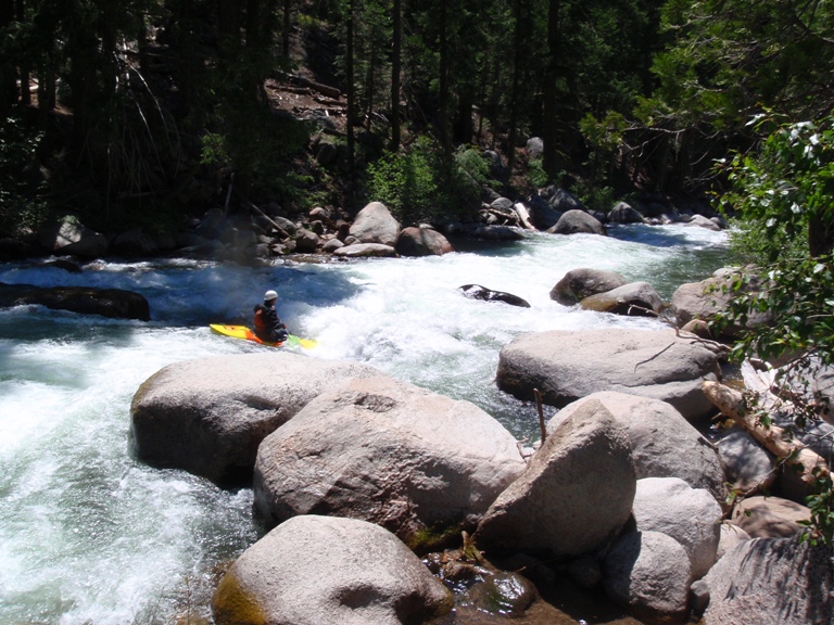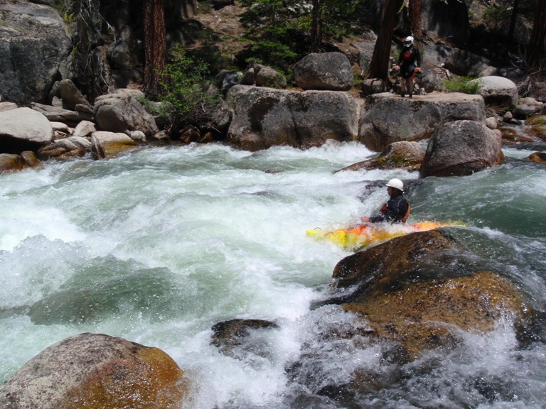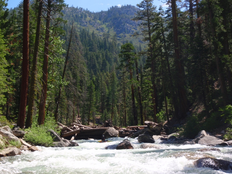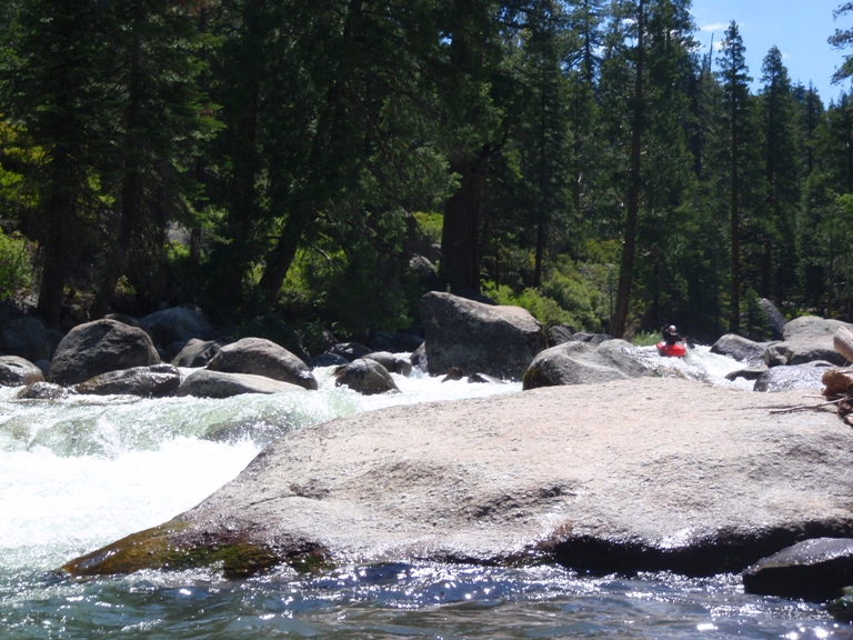So, this run is advertised as class IV-V. Interesting. There were some wood portages, there were two gorges that would certainly kill you, there was another gorge that would be class IV-V if it weren't chalked full of log jams requiring a portage, there was 7 miles of high stress, tree around every corner class II to III-... oh, and there was the final 0.6 miles of class IV-V runnable whitewater. Take what you want from that. The portage gorges were very cool to see, however both are also mere feet from Highway 108 so you could drive, park, and walk to see them. The first gorge portage was long, probably close to a half mile due to the logs filling the mini-gorge below it. In all, I would say this run was a lot of work, with minimal payoff. It could be a fun class III day to boat to the highway 108 bridge, but a class IV-V boater will most certainly be bored doing the whole run. If you are a class IV-V boater, put in just above the good section and run it in conjunction with the Donnells run downstream. Although Dardanelles is roadside at all times (other than in the last mile where the goods are) with fisherman and their hooks being the greatest concern (with the log jams close behind), downstream awaits clean rapids, complete solitude, no roads, and fantastic views. Not that the views in Dardanelles are bad, they are good, better than the average kayak run, just not epic.