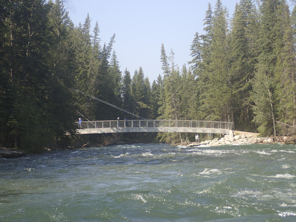 Take-out: From the town of Jasper, head north on AB-16 for about 4 kms. Cross the river onto Malingne Lake Rd and follow this for 3.1 km, turning left towards the Maligne Canyon Trailhead. Follow this for 800 m to the trailhead. This is the 5th bridge (counting down from the top, but that is also the naming scheme on google)