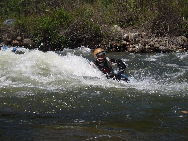 huge hole just downstream. We skirted the hole on the right and eddied out after 100
