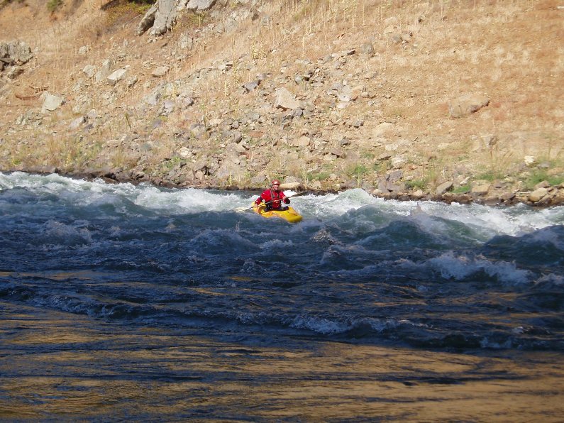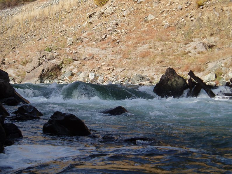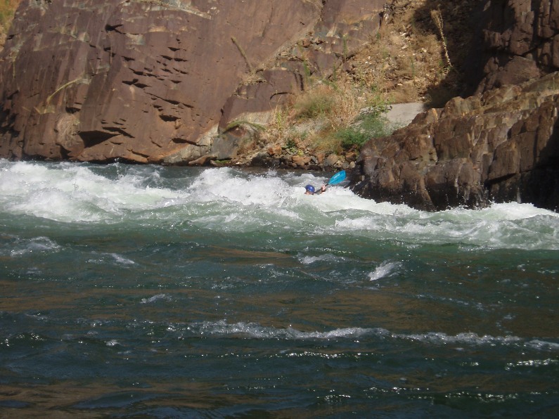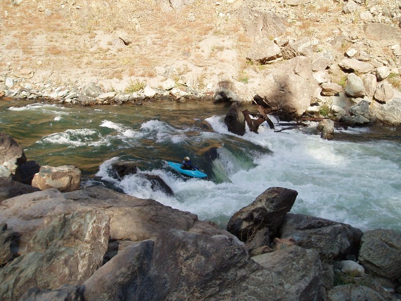 - Large Hole (III-). After the river makes the obvious and dramatic turn west, this rapid appears. The lead is in easy class II and then the river gets steeper. The right side goes over a small pour-over with a hole that you wouldn't expect. To boot, it also had a large toe back. I would highly recommend not going anywhere near it and instead staying on the left side of the drop.