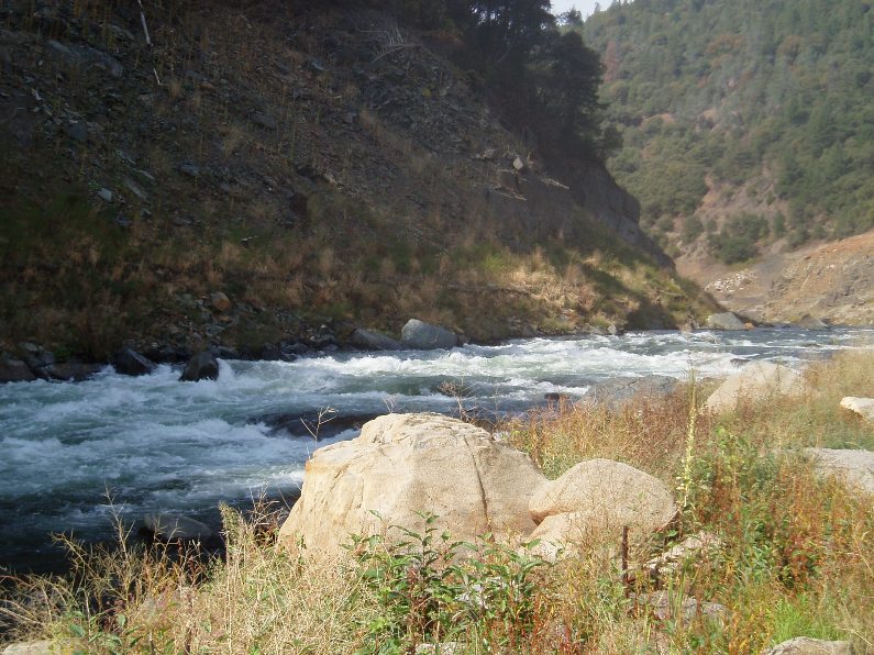 Put in: Return to Big Bend road and turn right. After a short distance the road forks, stay right on Big Bend Road. Stay on this for another 0.4 miles. Turn left on Bardees Bar Road and follow for 1.4 miles. The road then makes an abrupt turn back upon itself, follow this (it is easy to see). After another 2.9 miles you arrive at the powerhouse, park somewhere where your car won't be in the way.