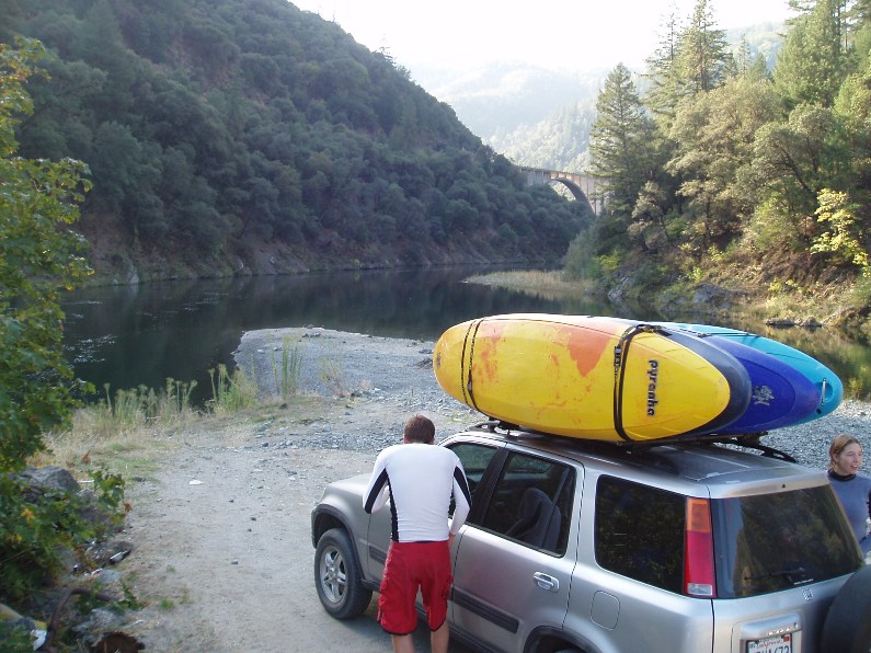 Take-out: About 14 miles past CA-149, take a right on Big Bend Road. Take an immediate left to stay on this road. After no more than a mile, there is a street coming in on your right (at a hair point turn), turn right onto Dark Canyon Road. Follow this a few miles down to the water.