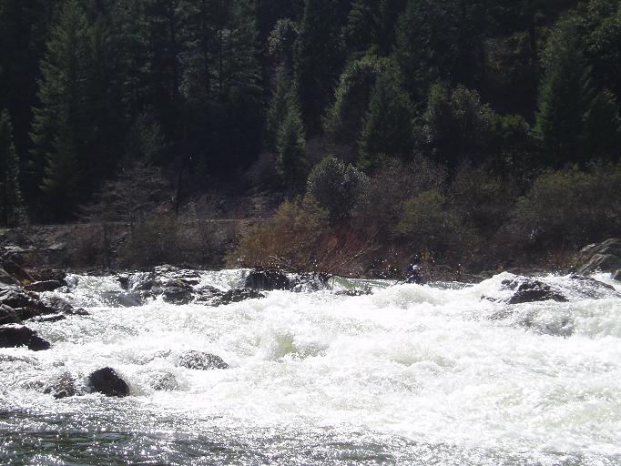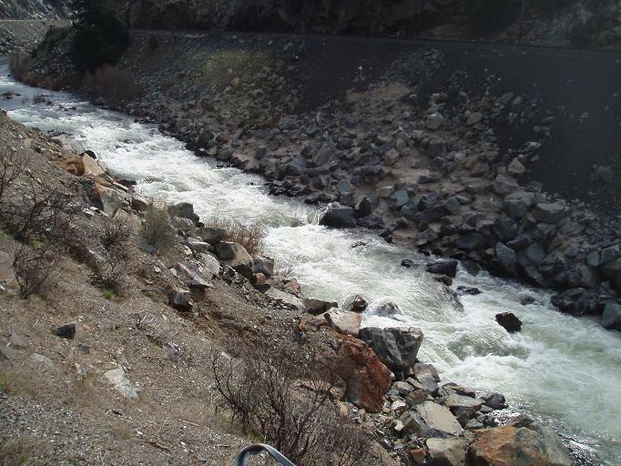 So this run was supposed to be easier than Indian Creek upriver, but this was inaccurate. The rapids were larger, longer, had more moves, and contained many more consequences. We had about 875 cfs on Dreamflows, and this estimate seemed reasonable, if anything it might have been just a smidge higher. We found that although most of the rapids were class III to IV-, there was an occasional big one. We ran two solid IV rapids, then ran a borderline class V- rapid before one of our group dislocated his arm while paddling (didn't even role, didn't have his arms high, just was paddling, really bizarre) which caused us to spend the rest of the day trying to get him out of the shallow canyon and to a hospital, thus not finishing the run. Apparently there was one more class V (so I was told later) rapid which can be viewed from the road (didn't look like class V from up there though so who knows) and a long class IV rapid or two which also are visible from the road and didn't look that bad.