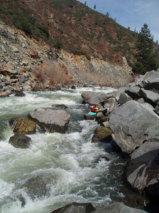 in the Big One. The rapid is formed between massive boulders with constricted channels.