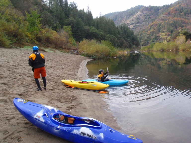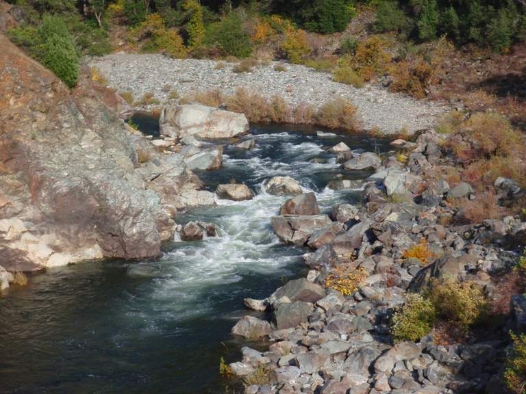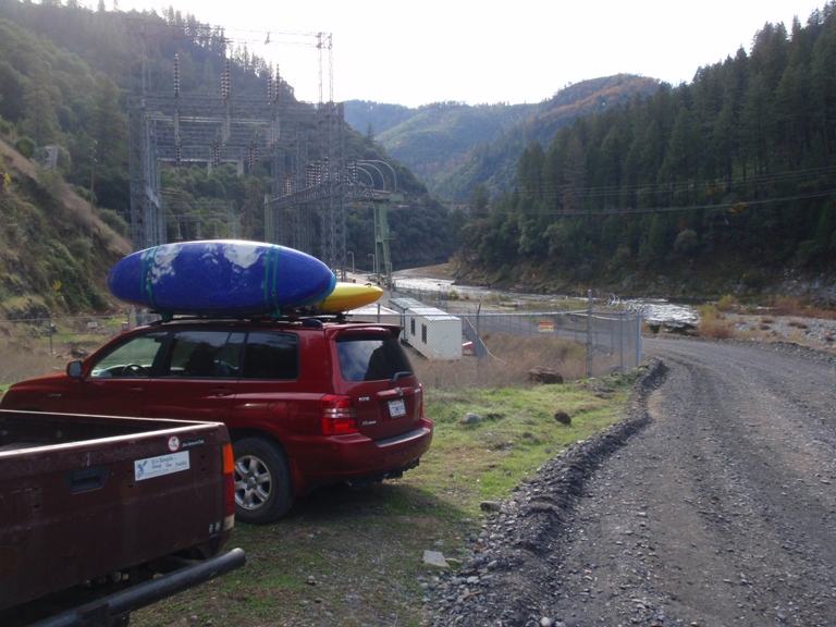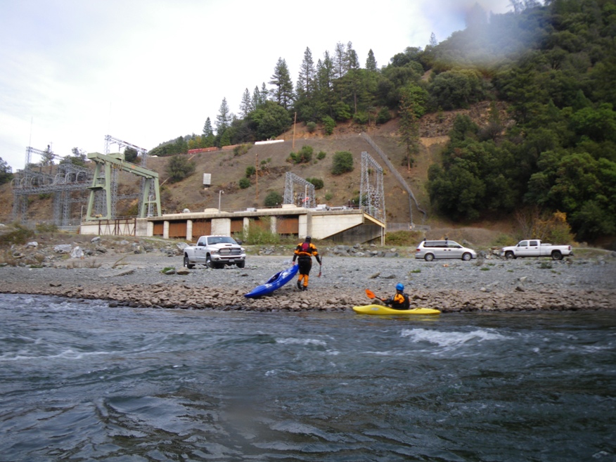 Take-out: Poe Powerhouse - Take Big Bend Road off of Highway 70 near the town of Yankee Hill. Follow it a mile or so up and down a hill. Look for the small road on your left labeled Bardees Bar. Take this road and follow it for a mile or two. You will come to an opening where the main road doubles back sharply to the right. Double back sharply and continue following until you cross the river and arrive at the Powerhouse. Bardees Bar - There are two ways to get to the midpoint. You can Take Bardees Bar like you are going to the Powerhouse, but at the sharp double back, go straight (I don't think it is labeled) and follow to Bardees Bar. The other way is to continue on Highway 70 another few miles until you see the power lines cross the highway. There is a turnout there that has a dirt road leave it. One heads downriver one heads upriver, take the one that heads up-river. It is steep and 4-wheel drive is recommended for traction purposes, not off road purposes. This road takes about 10 minutes to ascend whereas the other way is about 20 minutes. Some people set the shuttle using Bardees Bar Road approach and only drive out of the short cut as it is on the way in and is easier on the brakes.