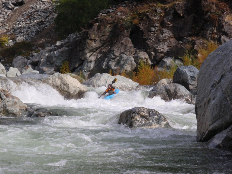 From that point the river is much easier, class III+ nature but rocky and still sievy. You can take out at Bardees Bar to lap the Canyon, for or the more timid you can put-in at Bardees Bar to run the easier rapids downstream. I would recommend feeling comfortable on Lobin before venturing down from Bardees Bar due to hazards of being upside down or swimming.