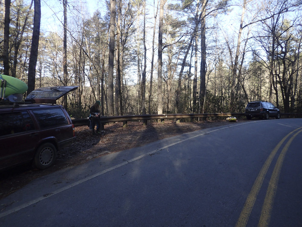 Put-in: From Alligator Rock, continue up NC-215 for 2.9 miles to a turn-out on the left just before a very large left turn in the highway.