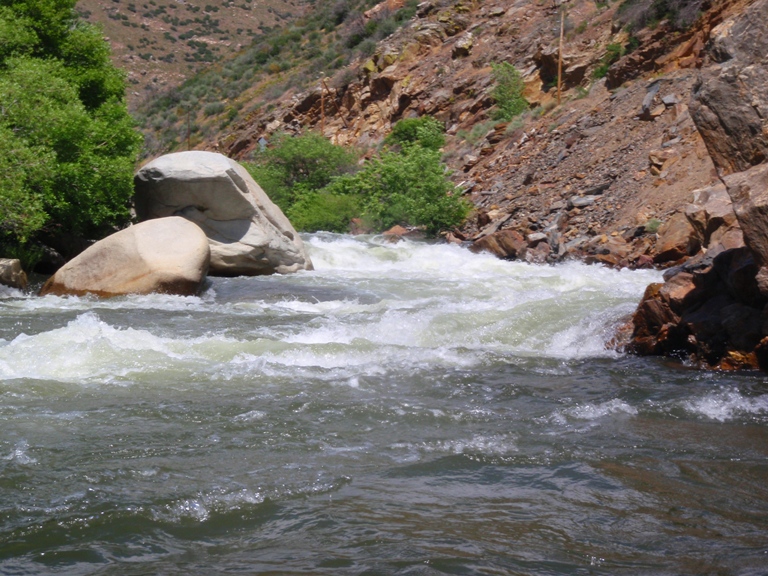 This run, although not difficult does has the extra concern that in Kern river fashion, at decent flows the current is swift and pools are scarce. This means that each group should have a competent boater with them in case of a swim and gear or people need to be aided to shore. Of all the runs on the North Fork of the Kern, this one is the easiest. Just make sure that you take-out at Calkins Flat lest you float into the class IV Chamise Gorge down below.