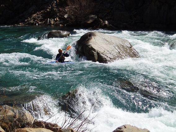 Easier Sharp Left (III-). Another sharp left which can be run down the center. Half way down there is a large hole in the middle that was runnable our day. Move left or right of the rock downstream.