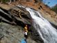 Scouted (IV). Halfway through this mile comes the beginning of the hardest gorge style rapid stretch. Just after a right bend comes a challenging rapid. You can enter right or left around midstream rocks. And you can finish right or left of a fan rock below. Whatever side you start on you end on, both go at our flow.