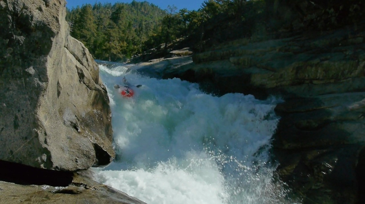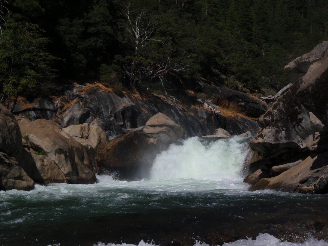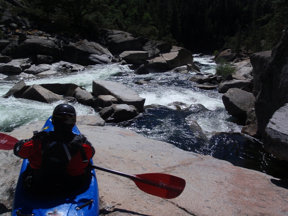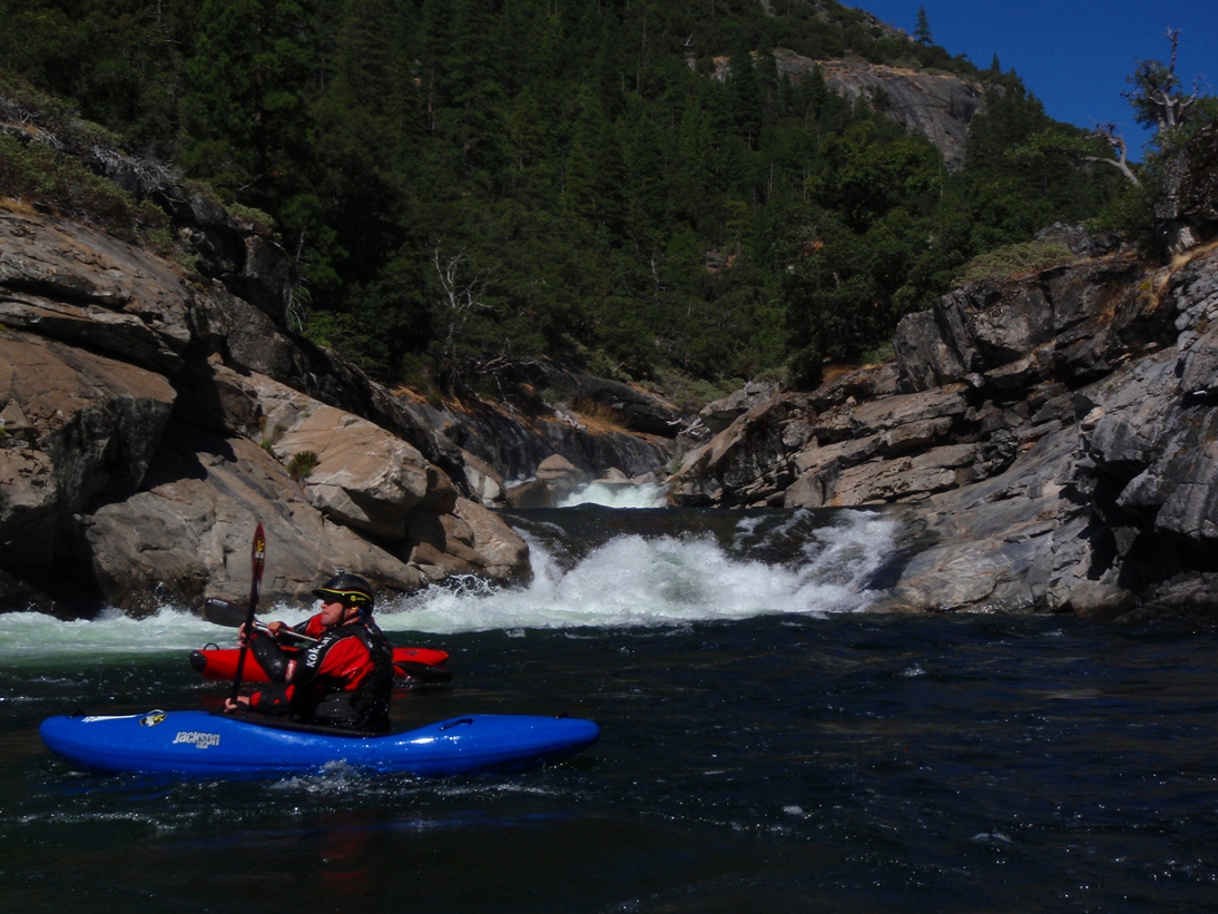 The scenery is good on this run, some nice forested sections along with some granite walls to grace your presence, overall though the scenery is a step down from Hells Kitchen upriver. So in summary, if you are hankering for a Fall high sierra experience and a full day of class V kayaking, head out this way. It will likely be the hardest thing running in the state...