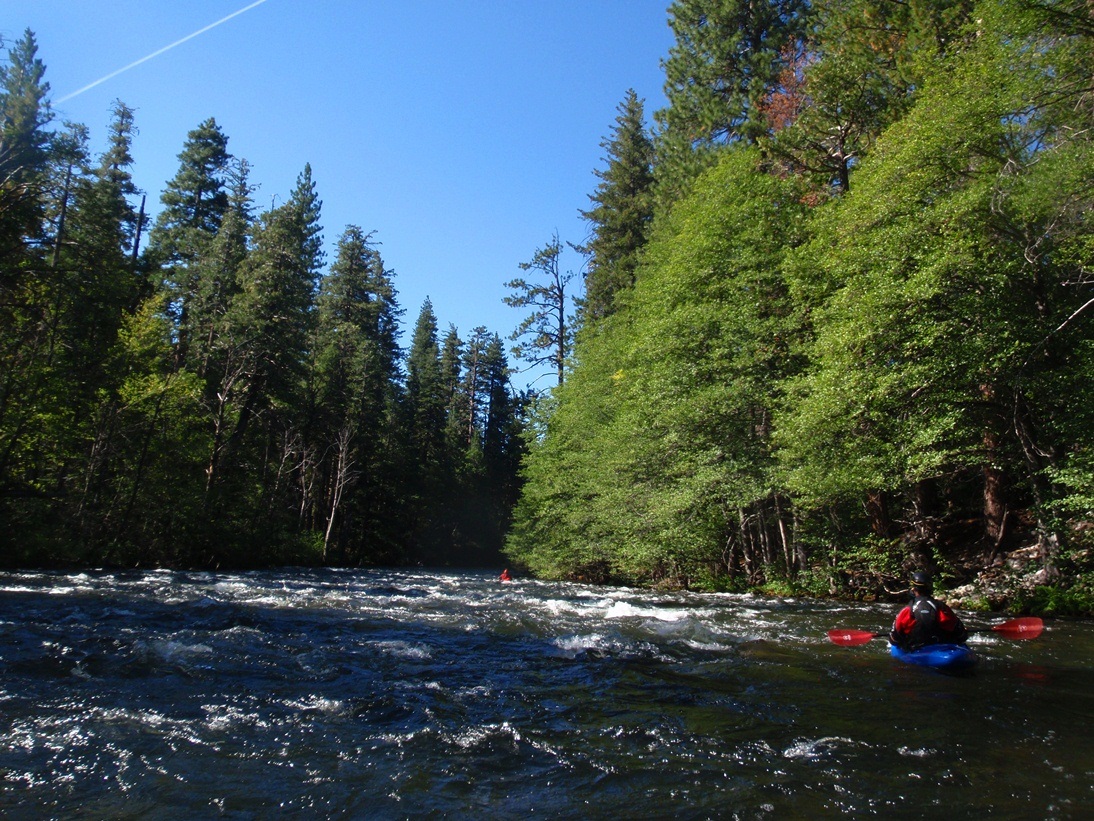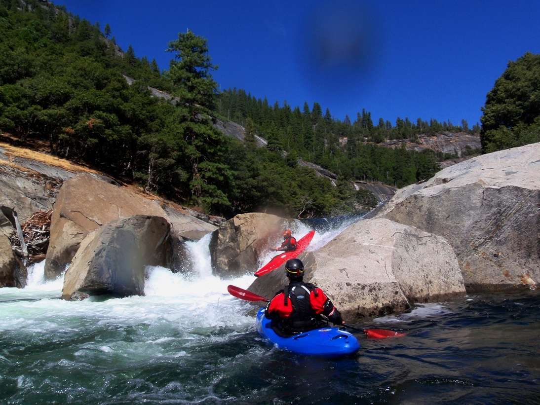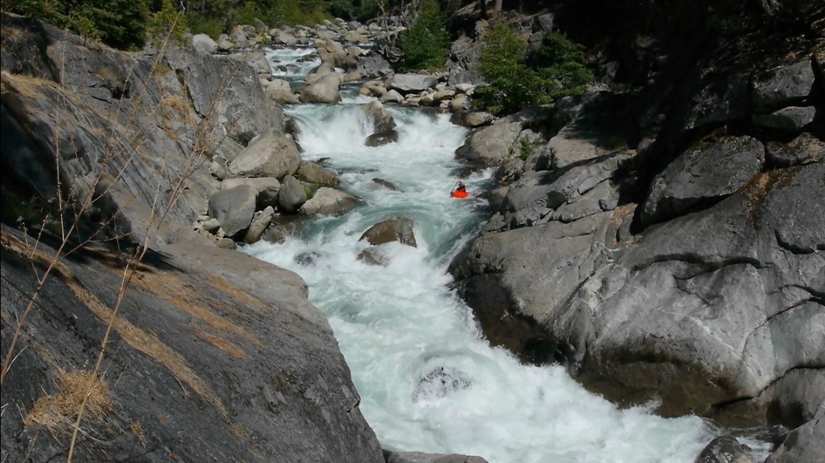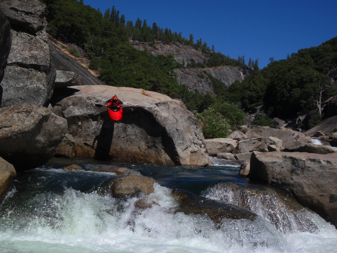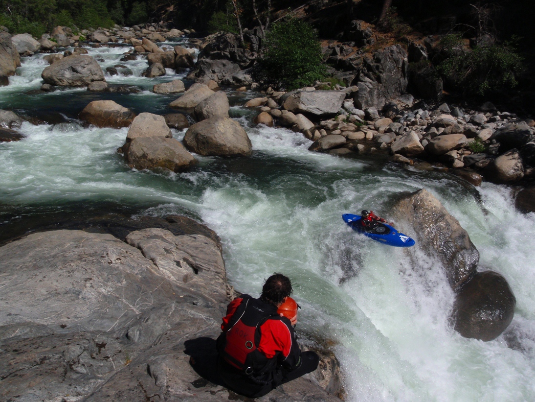 The scenery is good on this run, some nice forested sections along with some granite walls to grace your presence, overall though the scenery is a step down from Hells Kitchen upriver. So in summary, if you are hankering for a Fall high sierra experience and a full day of class V kayaking, head out this way. It will likely be the hardest thing running in the state...