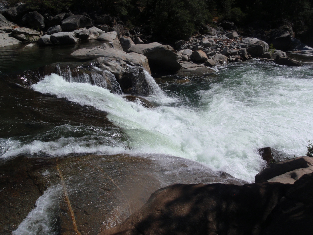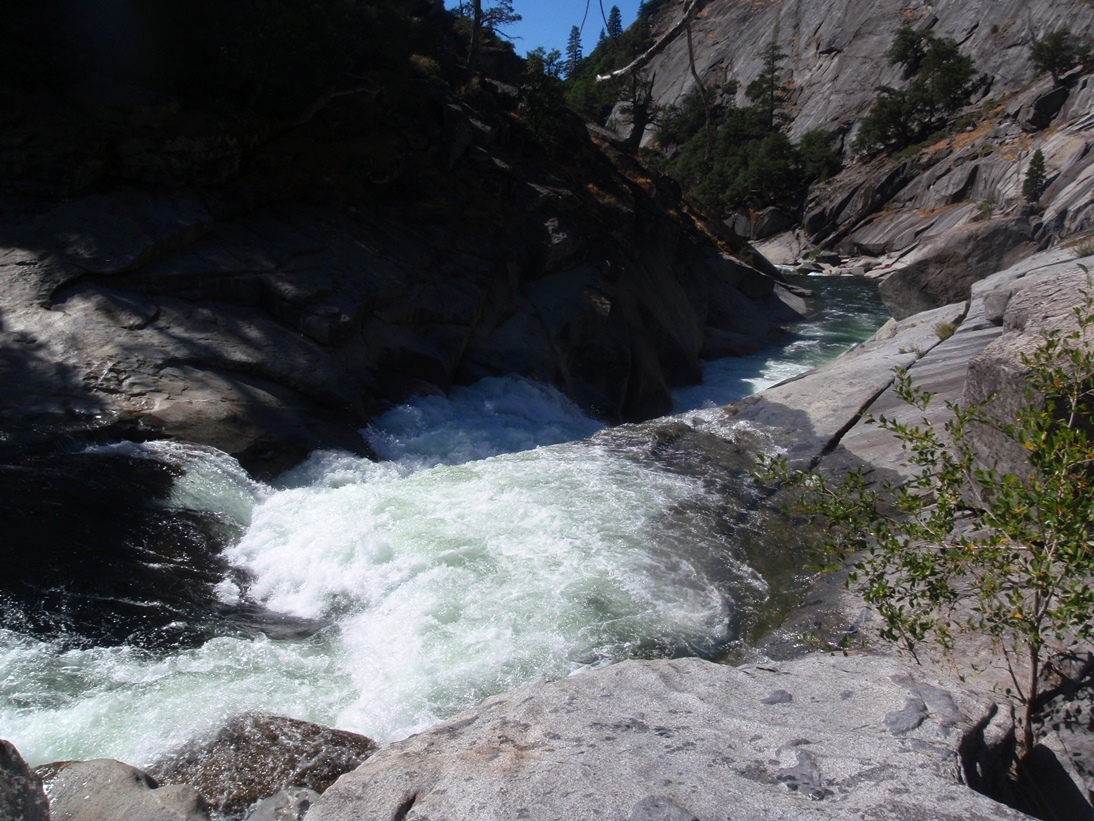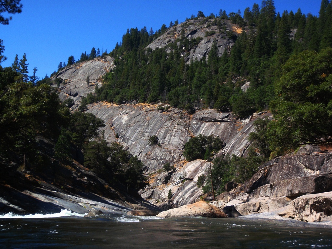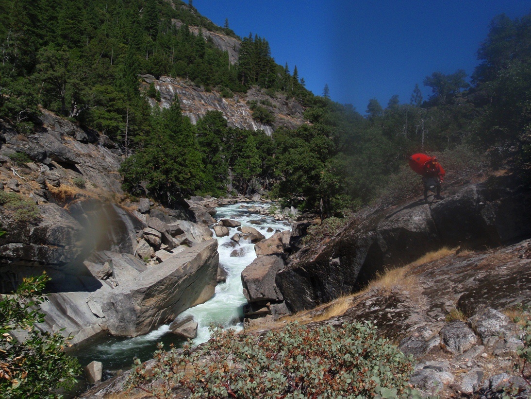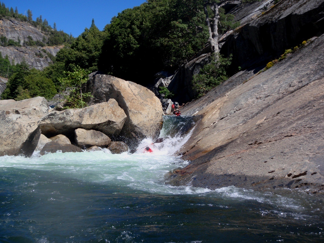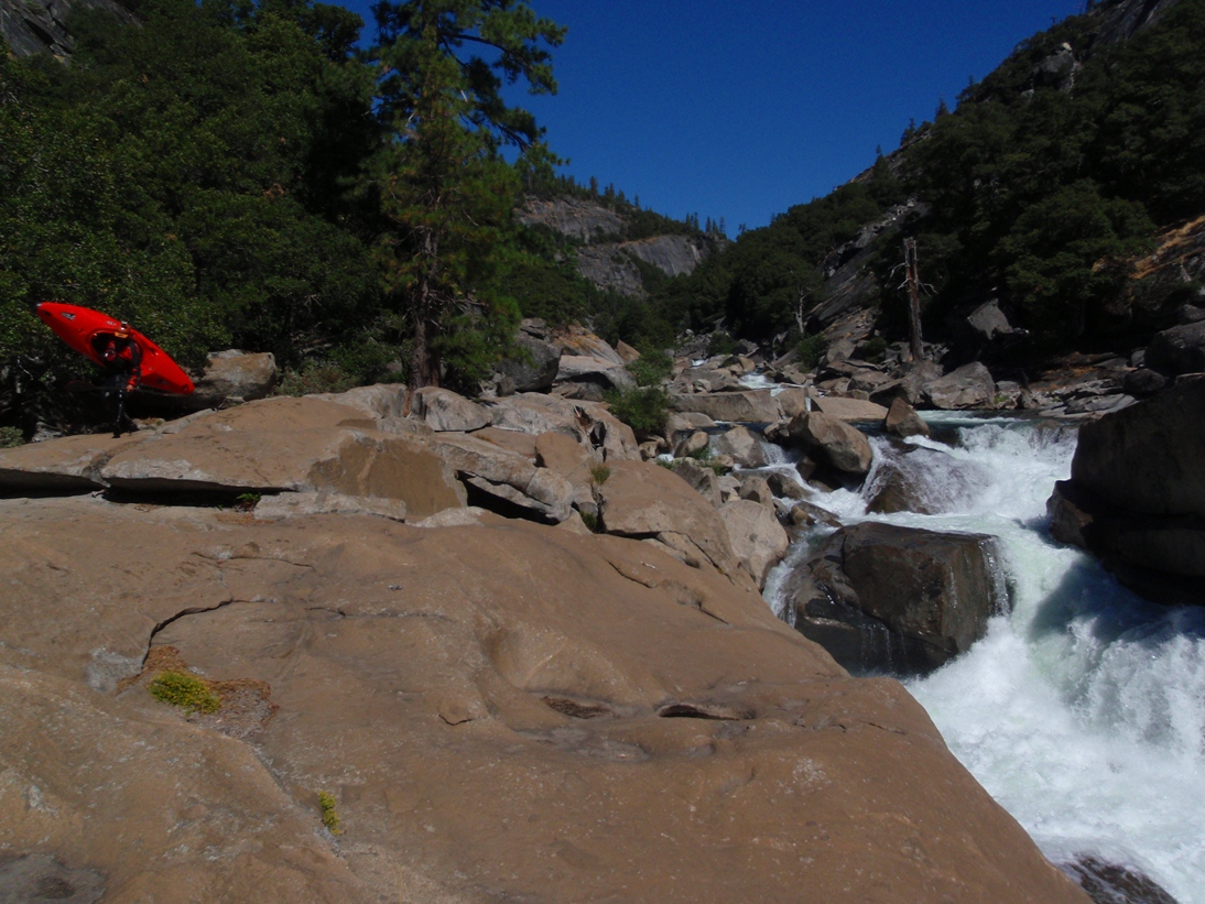 - Likely Portage (V+). OK, so I actually have no idea how runnable this rapid is. We portaged it on river left prior to the bend in the river where it fell off. We put-in with teamwork down a steep granite slope having never gotten a view of the rapid. I took a picture from below where we hung out and refilled our water in the sun on the far side of the river but it doesn't do it justice I think.