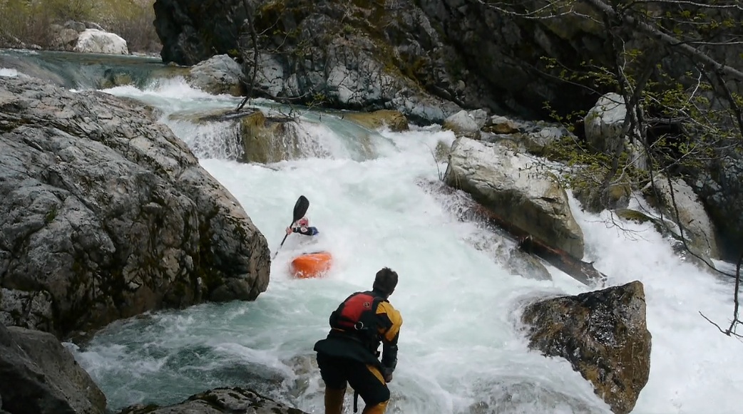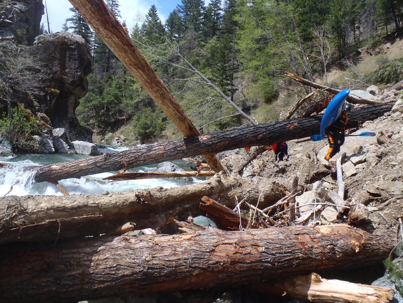 - Rapid #1 (V). The very first rapid should be scouted on the right. The middle has a log in play, so most will go far right to avoid the log. Also, this rapid is commonly portaged.