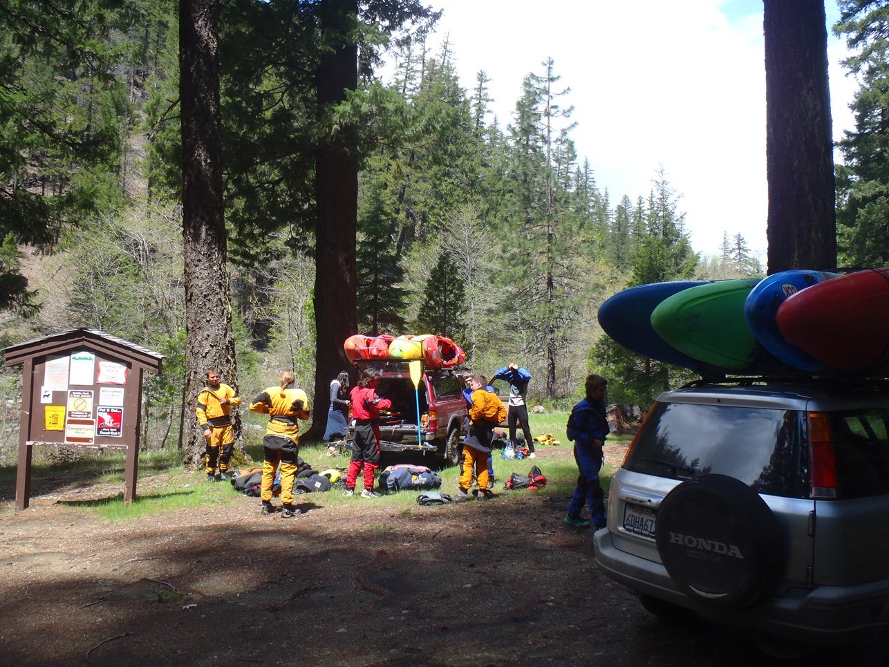 Take-out: 15 miles West on Highway 299 from Weaverville, you will cross the North Fork. Turn right on East Fork Road and travel 1.1 miles to the first bridge which crosses the North Fork. Park on the far side.