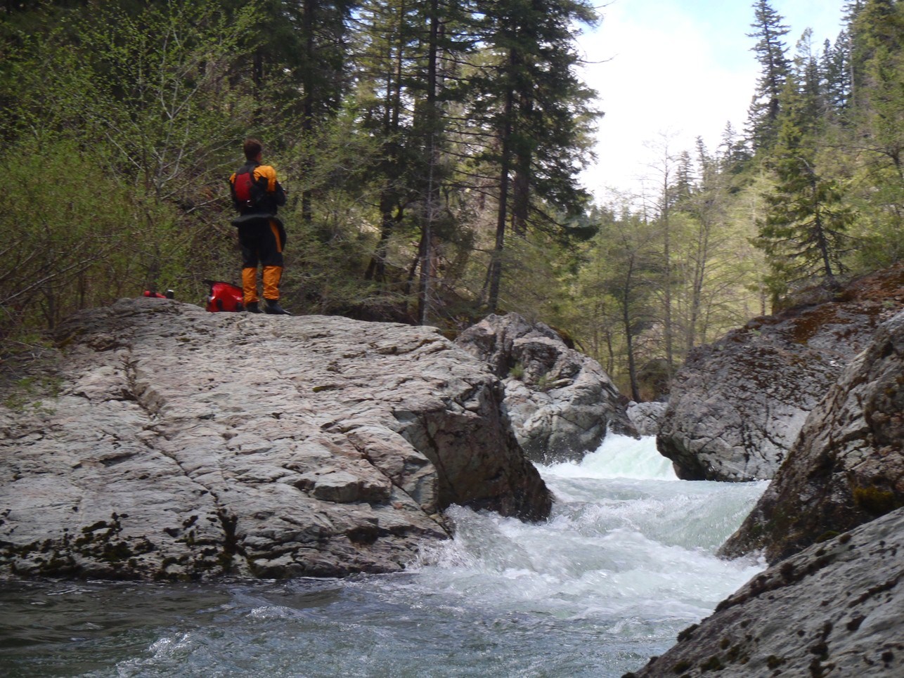 - Pre-Leap (IV+ to V). I don't remember this rapid being too hard, but it has swum several people. We ran down the right moving to the center and then back right. That is all I remember. If you swim, you are likely going to swim Leap of Faith too... There was a small willow pile on the left just above the Leap that you might be able to collect in. Perhaps...