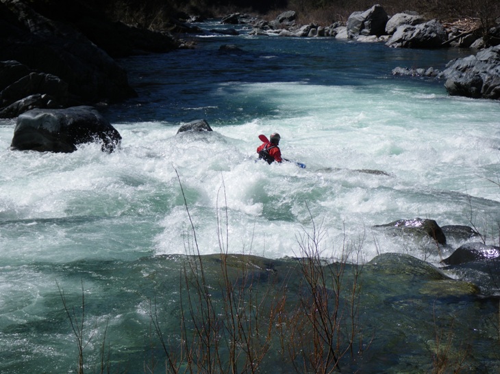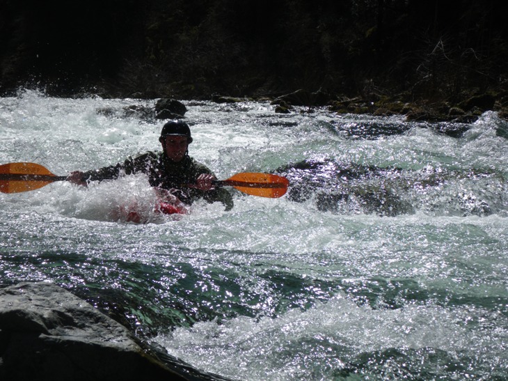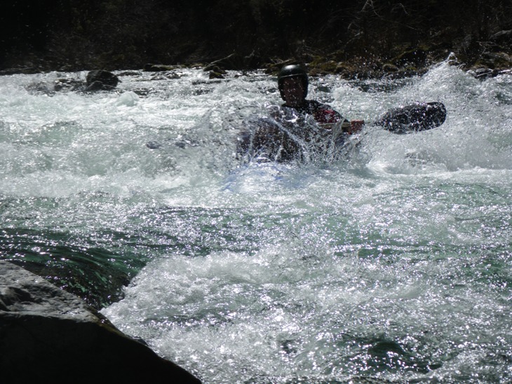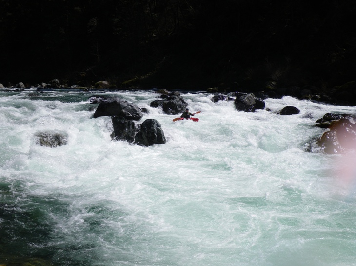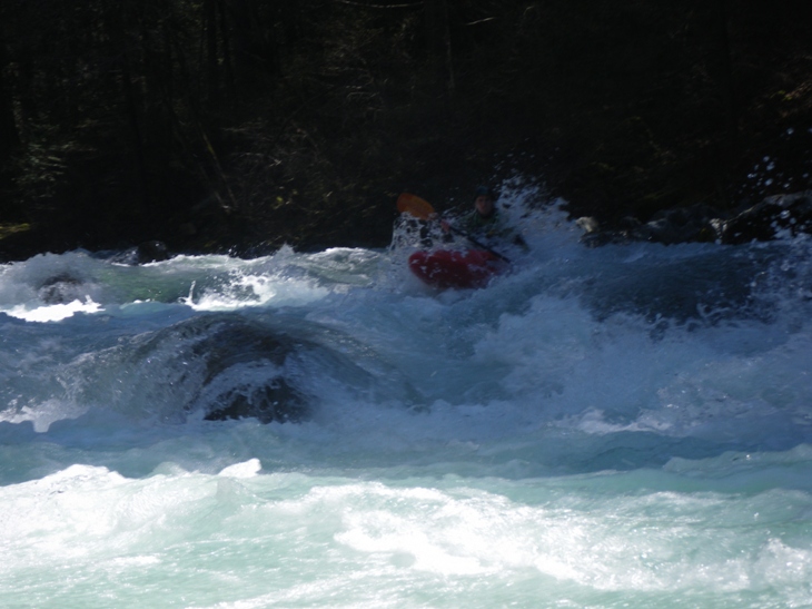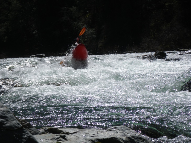 First Fun (IV-). This was one of the ebst rapids on the run. The right half of the river is an obvious no-go as the water slams into a house size rock and probably sieves out. So just run down the left, stay upright and get ready for the folding hole at the bottom.
